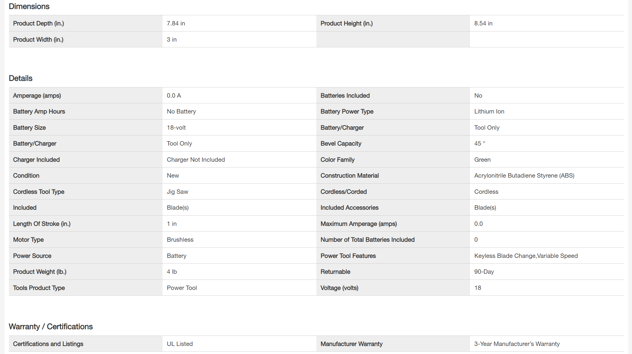 RYOBI Jig Saw PBLJS01B ONE+ HP 18V Brushless Cordless (Tool Only)