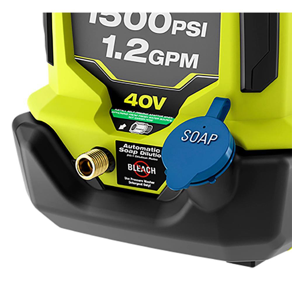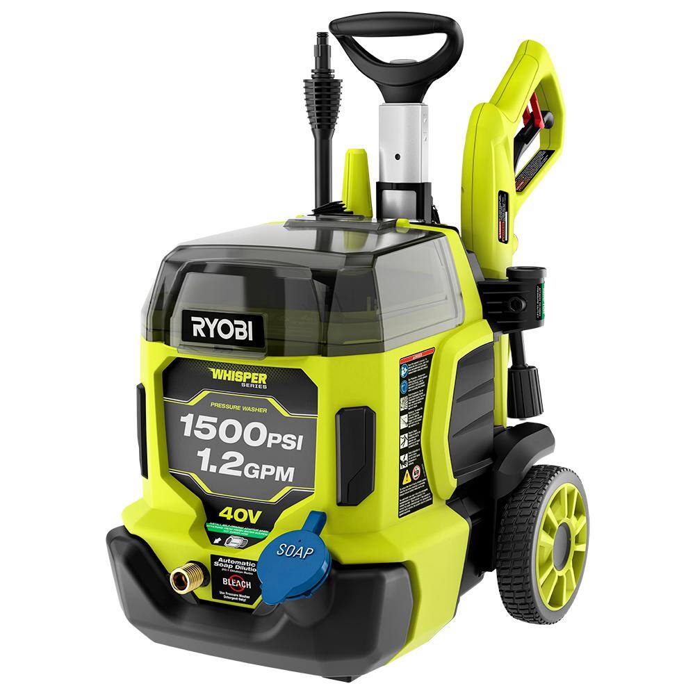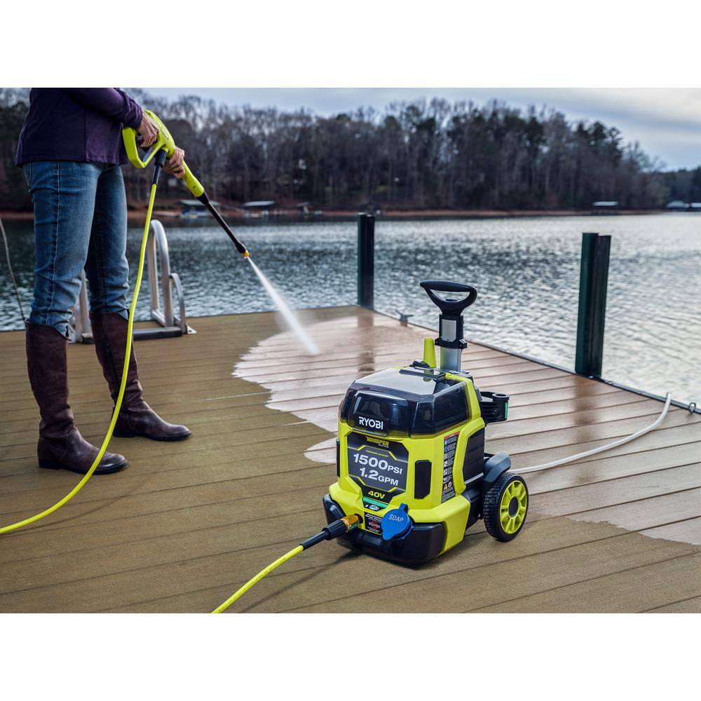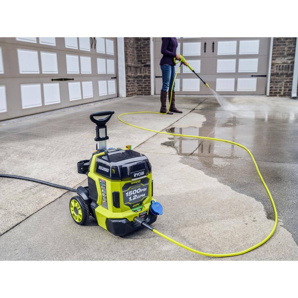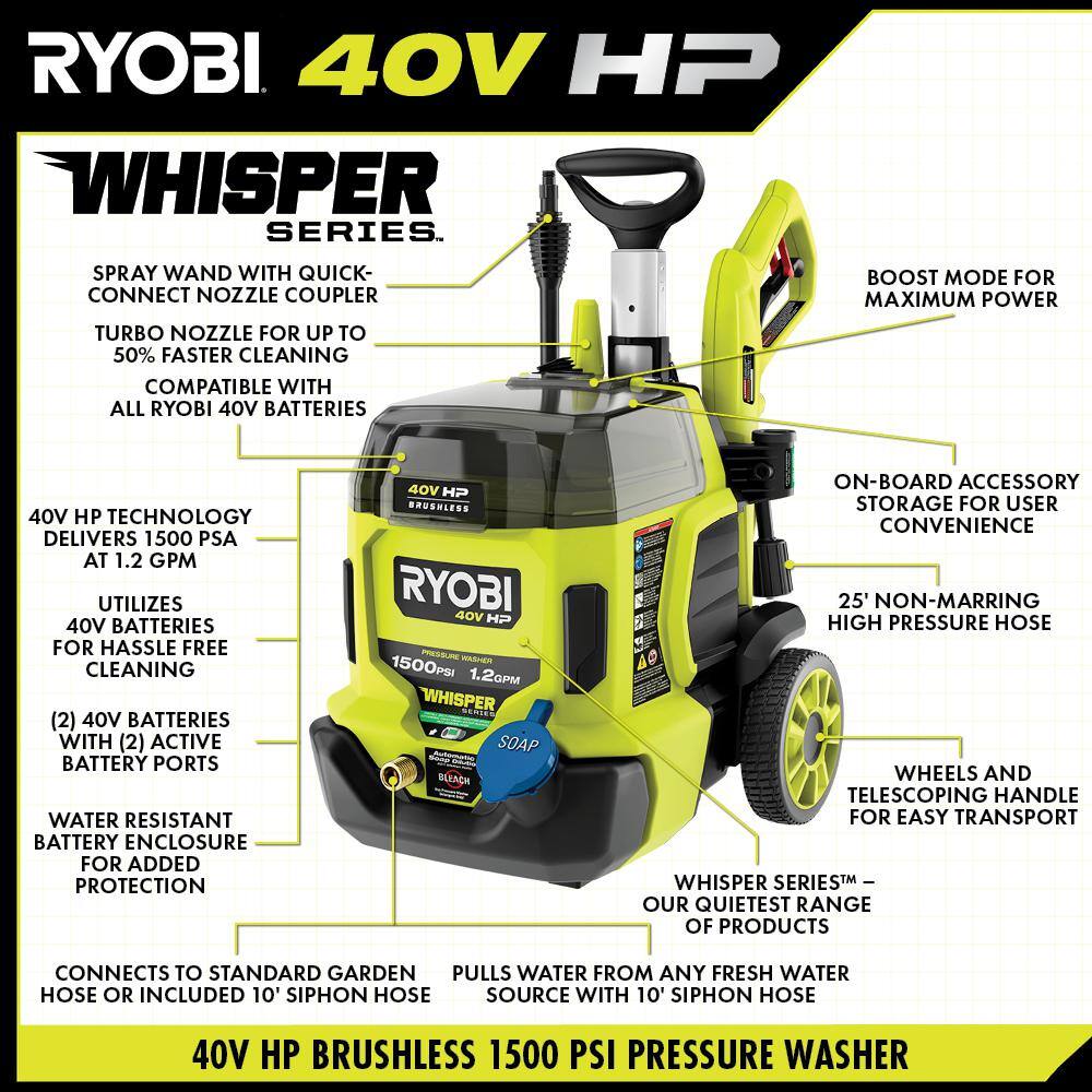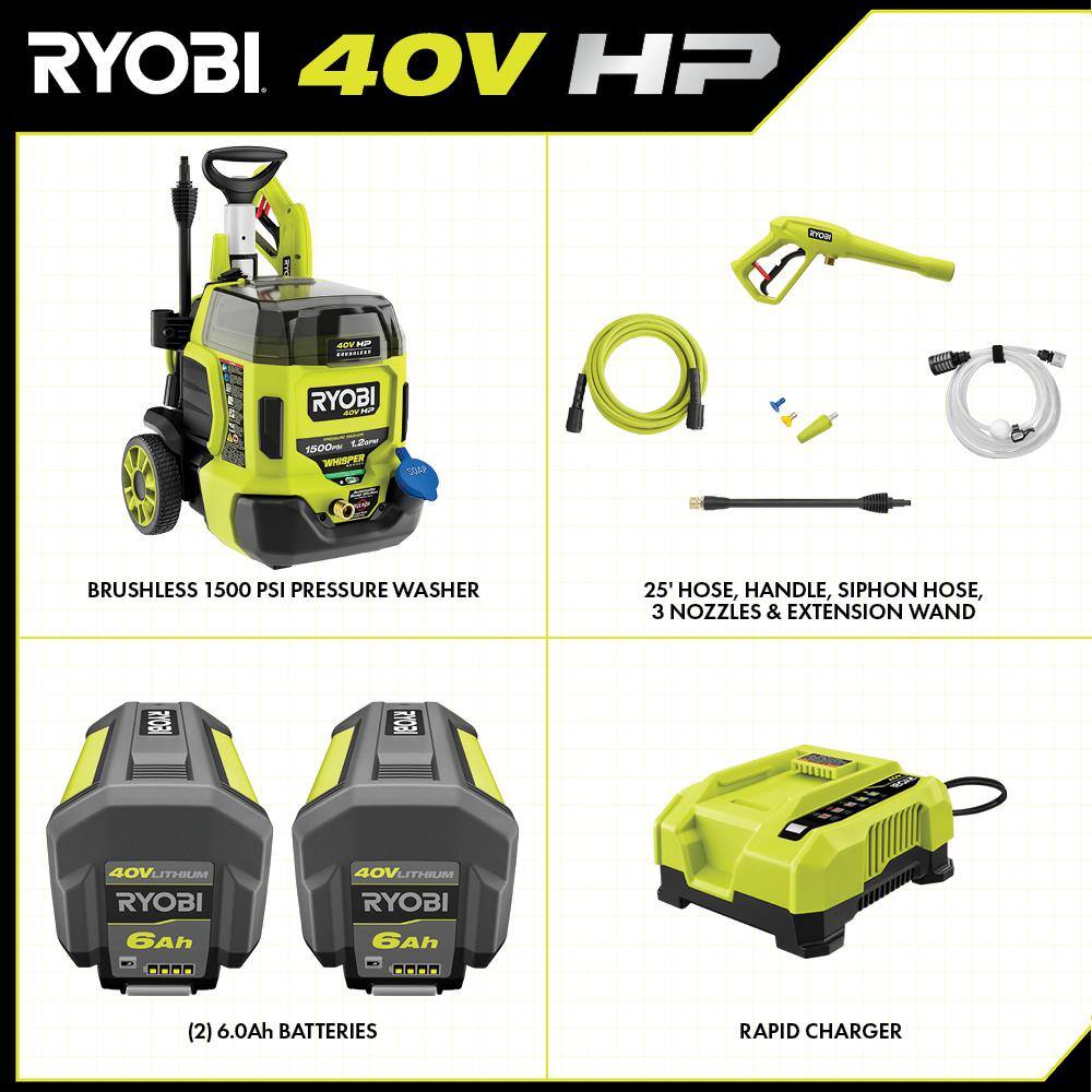 RYOBI RY40PW15 40V HP Brushless Whisper Series 1500 PSI 1.2 GPM Cold Water Electric Pressure Washer w/ (2) 6.0 Ah Batteries and Charger