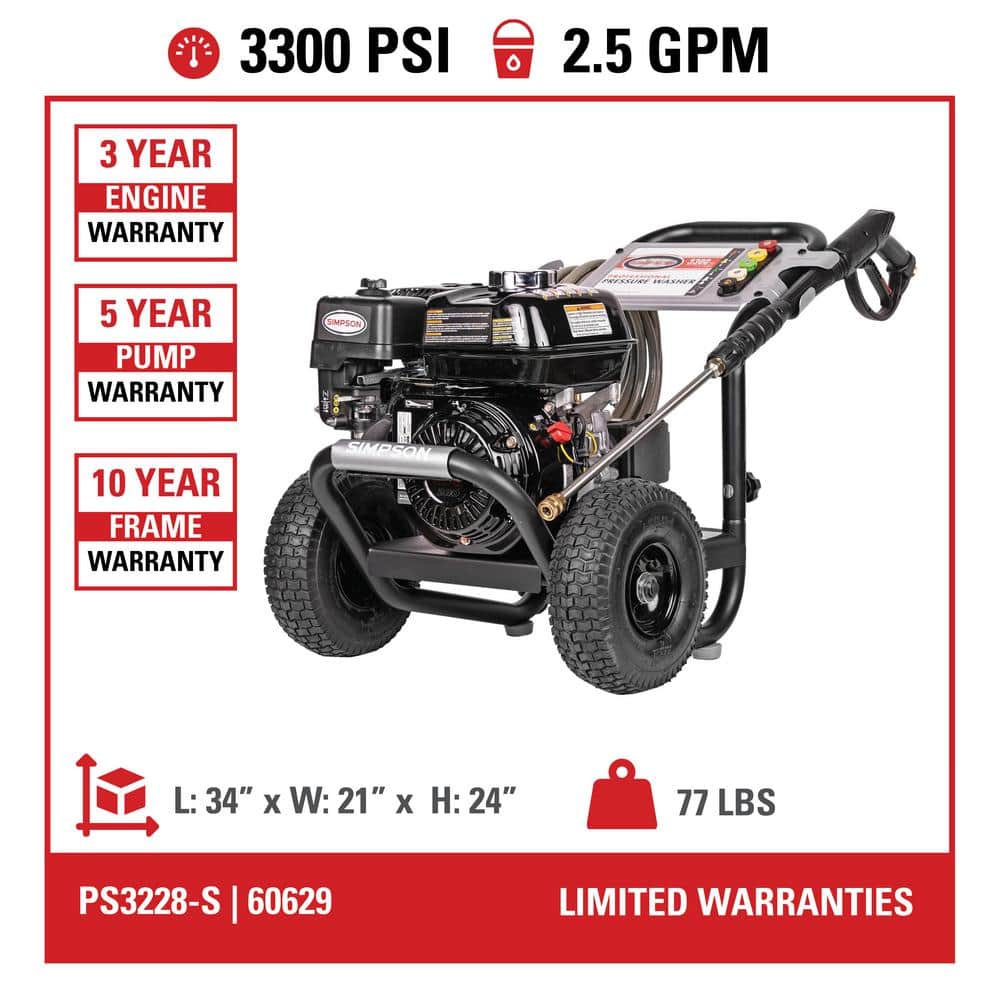 SIMPSON PS3228-S PowerShot 3300 PSI 2.5 GPM Gas Cold Water Professional Pressure Washer with HONDA GX200 Engine