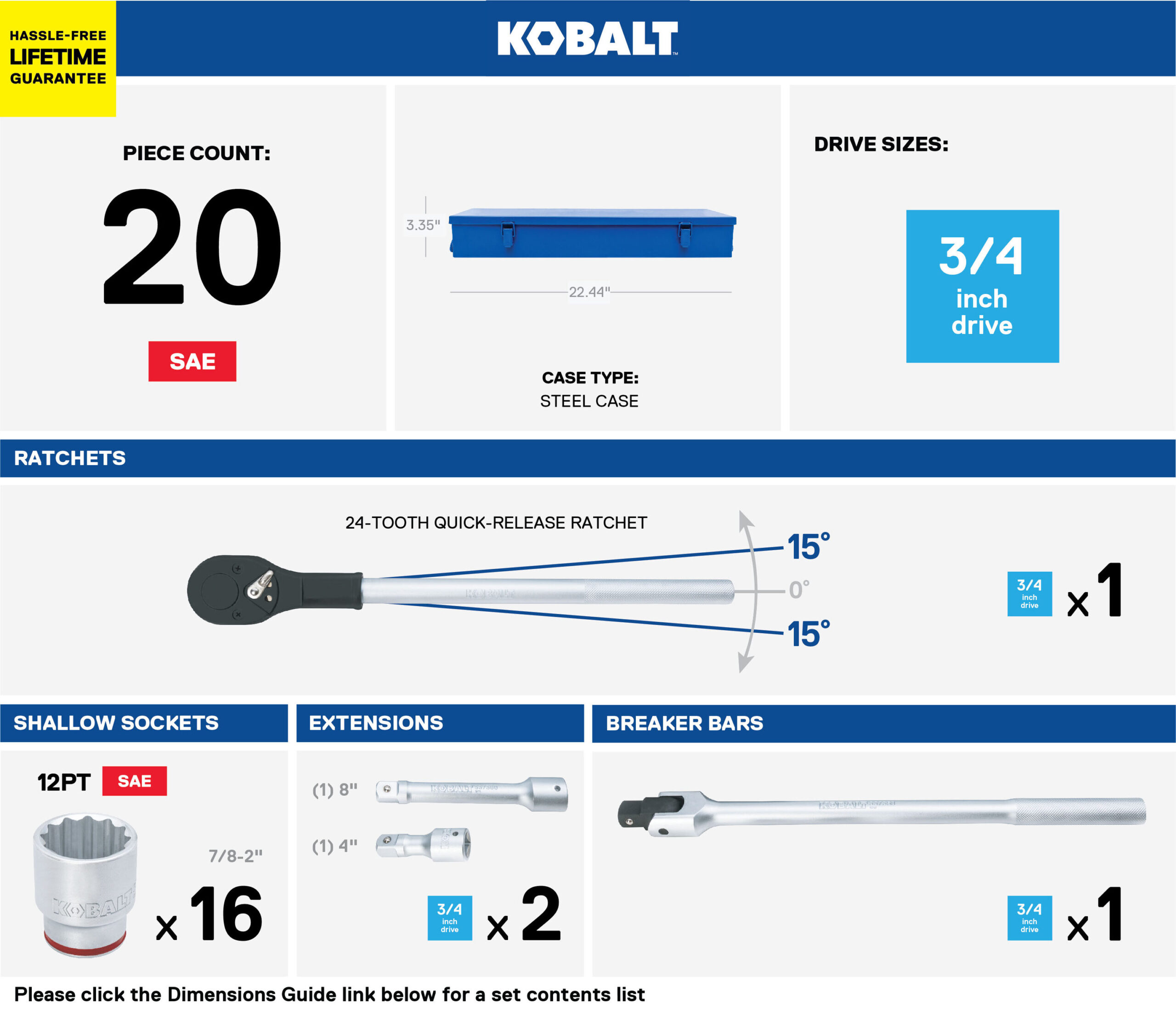 TEKTON 8-Piece Standard (SAE) 3/4-in Drive Set 6-point Impact Socket Set