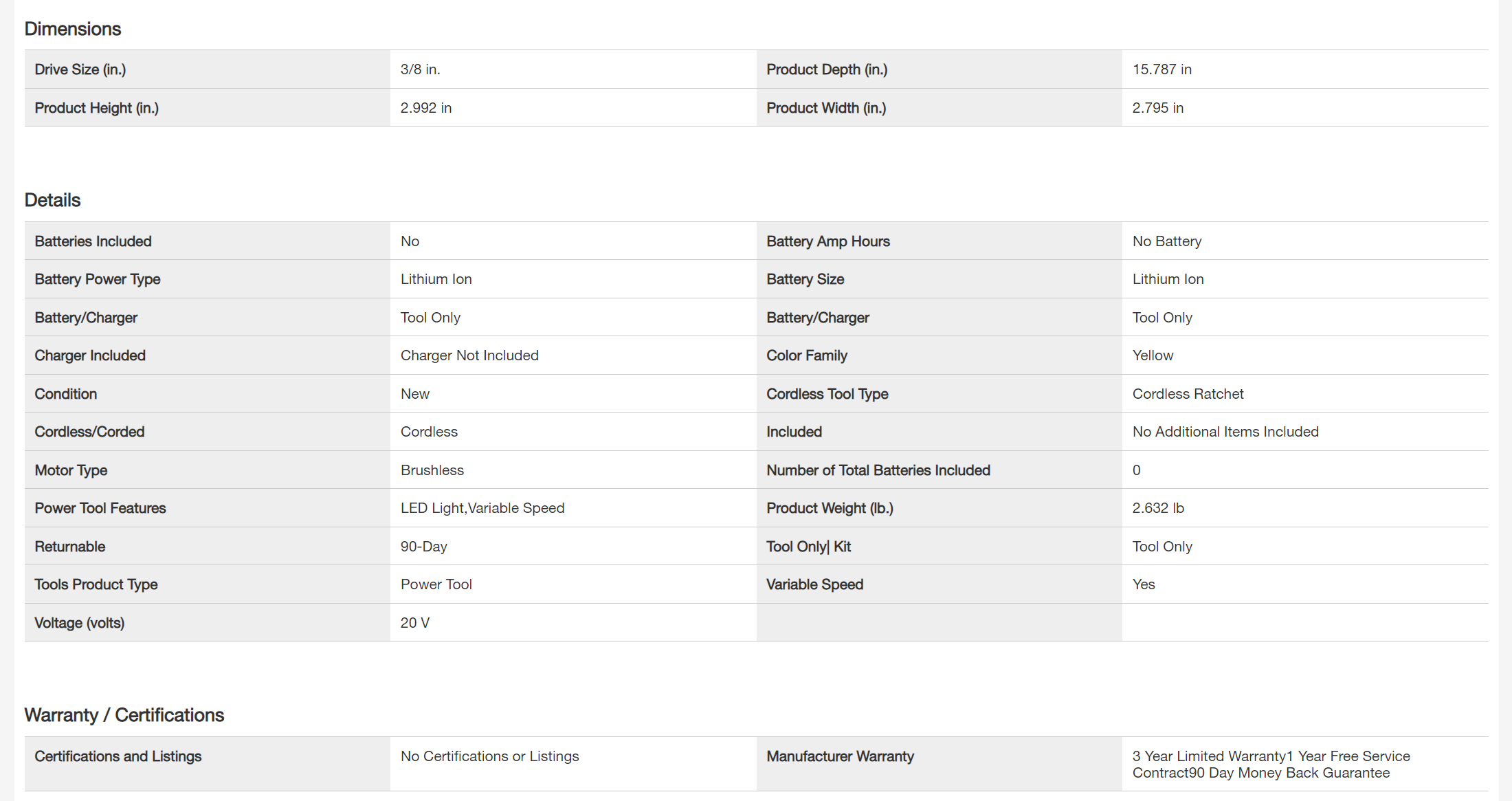 DEWALT DCF513B ATOMIC 20-Volt MAX Cordless 3/8 in. Ratchet (Tool-Only)