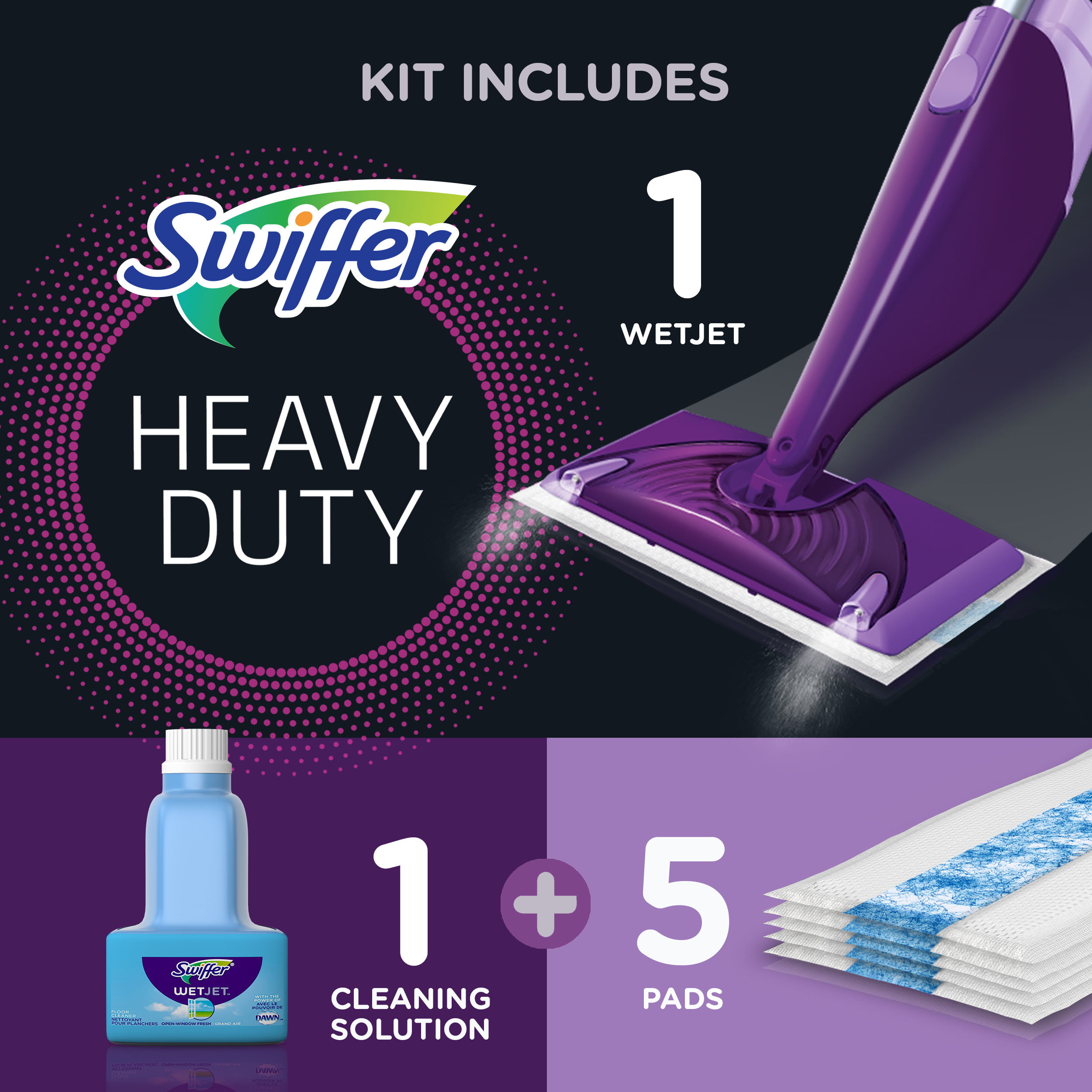 Swiffer WetJet Starter Kit (1 Mop. 5 Pads. 1 Cleaning Solution)