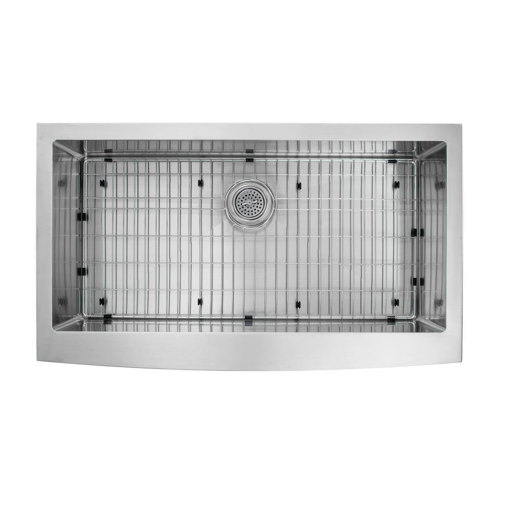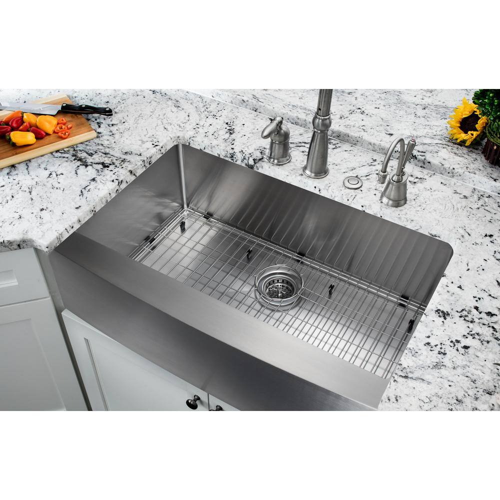 IPT Sink Company 1002286332 Apron Front 36 in. 16-Gauge Stainless Steel Single Bowl Kitchen Sink in Brushed Stainless with Pull Out Kitchen Faucet