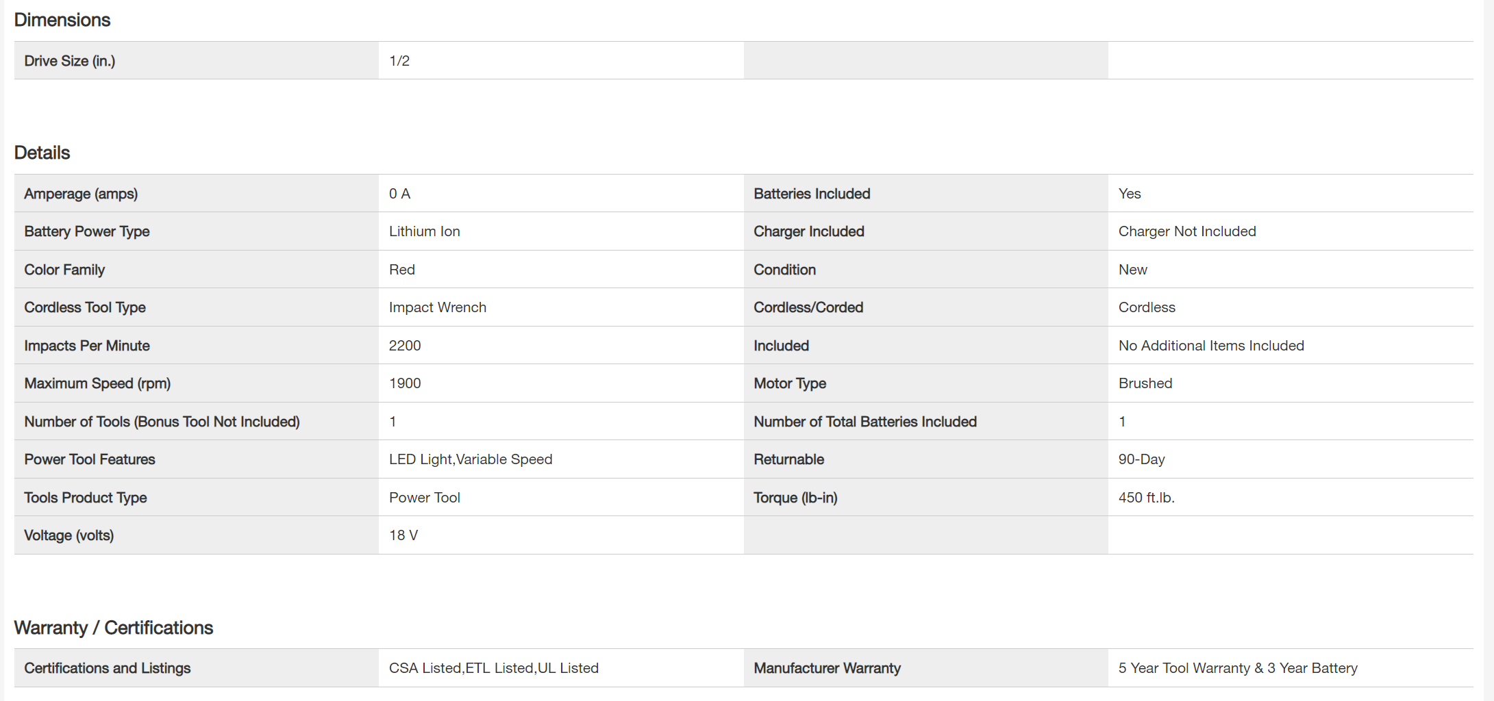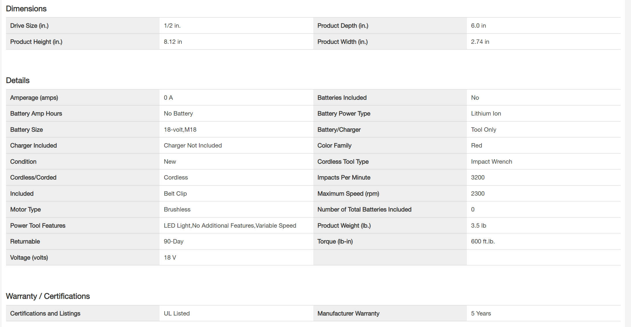Milwaukee 2663-20-48-59-1850 M18 18V Lithium-Ion Cordless 1/2 in. Impact Wrench W/ Friction Ring W/ (1) 5.0Ah Battery and Charger