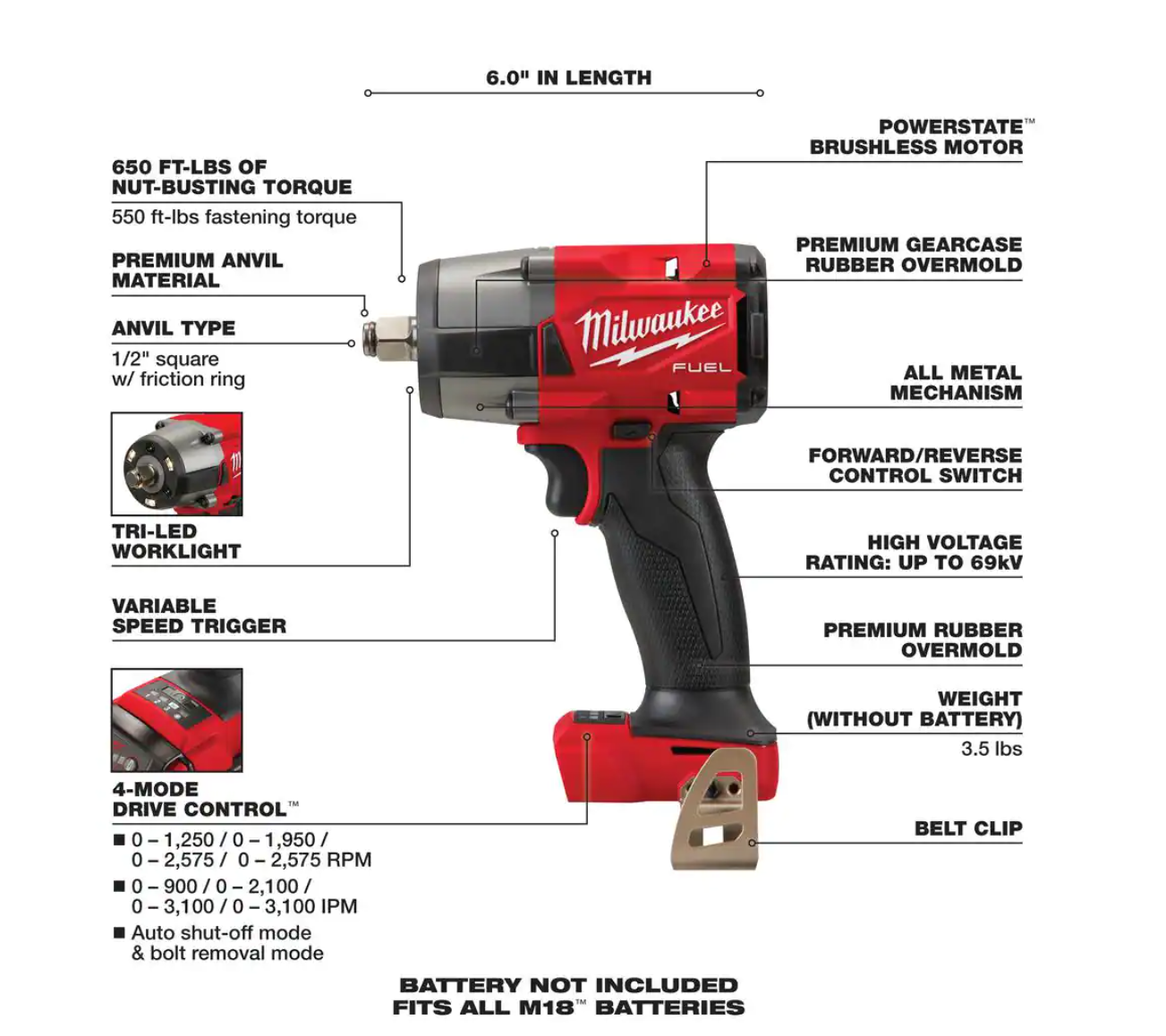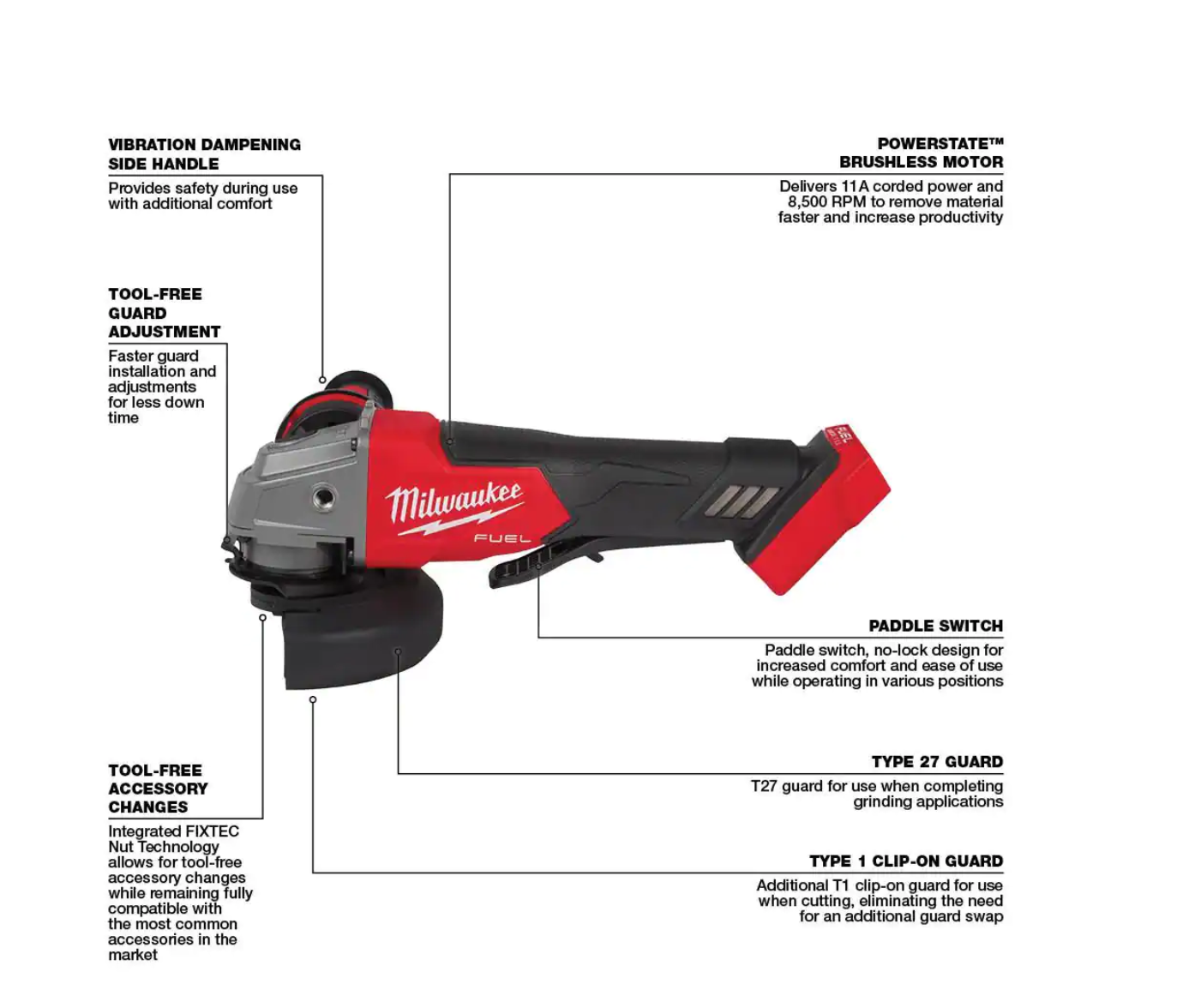 Milwaukee 2962-20-2880-20 M18 FUEL Gen-2 18V Lithium-Ion Brushless Cordless Mid Torque 1/2 in. Impact Wrench with Friction Ring with Grinder