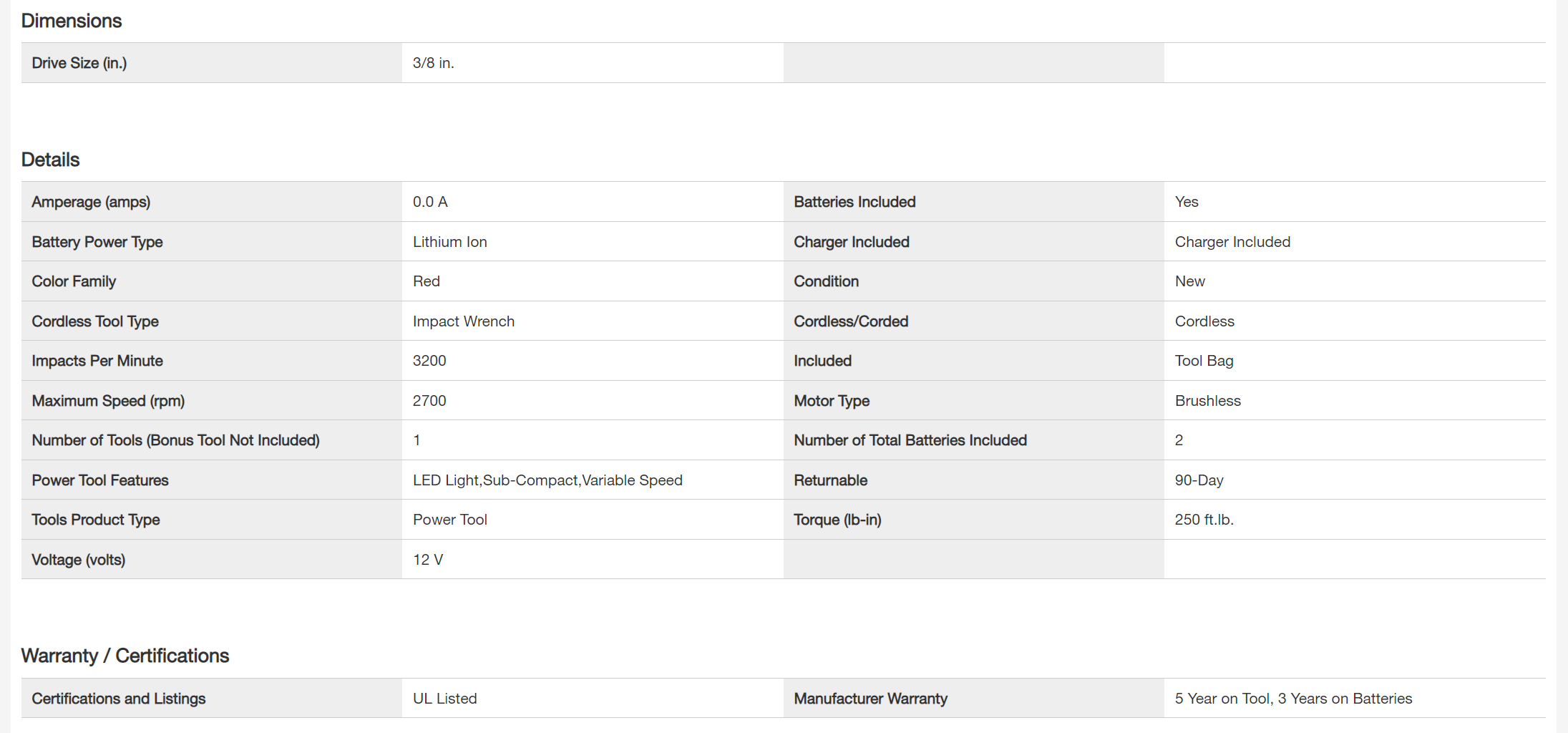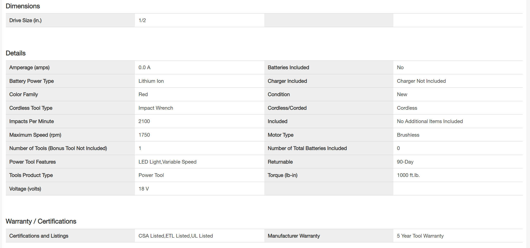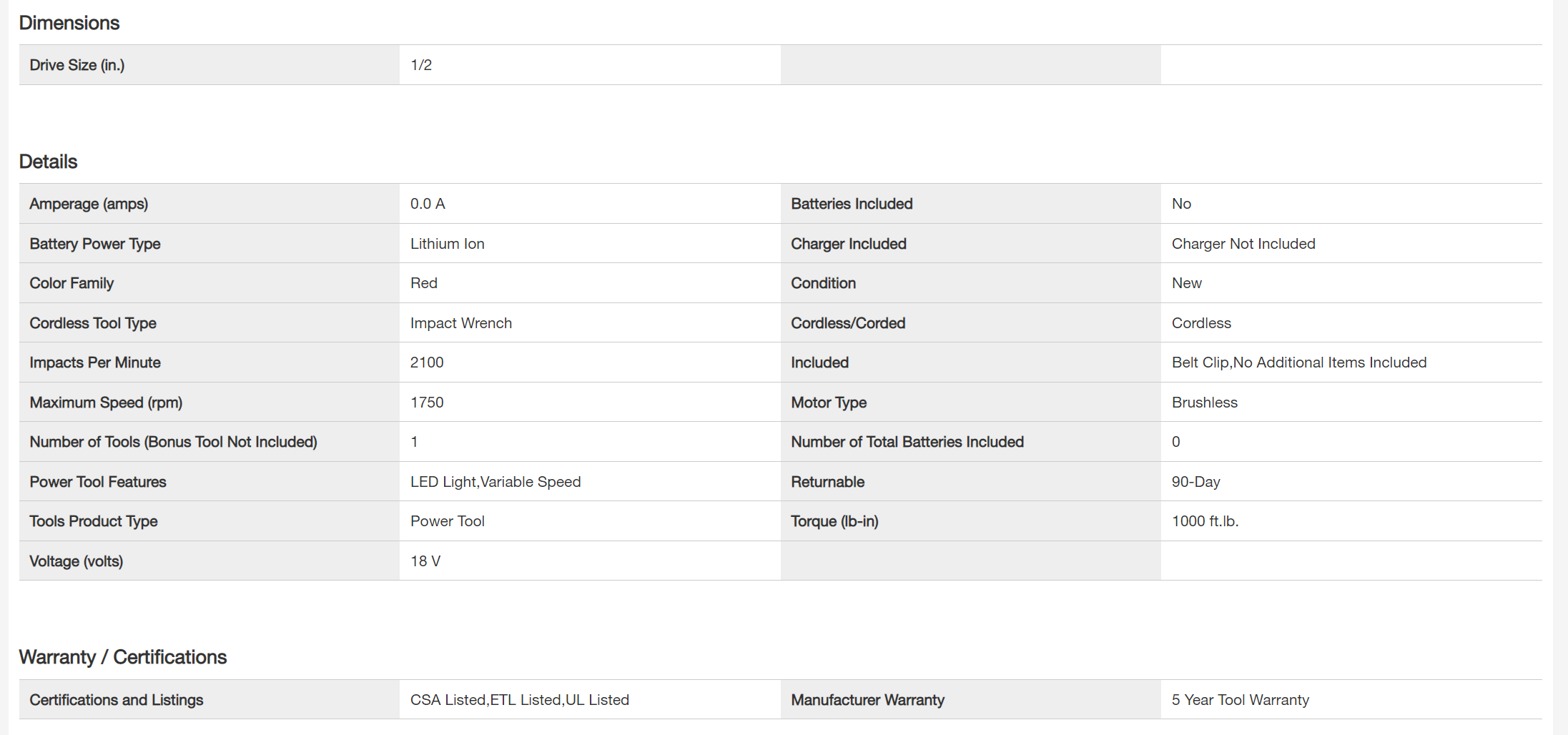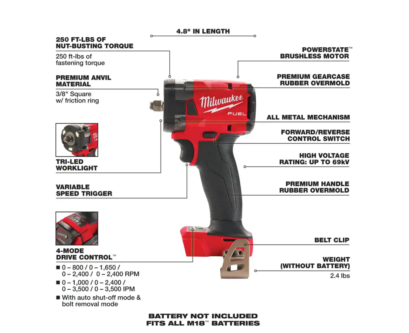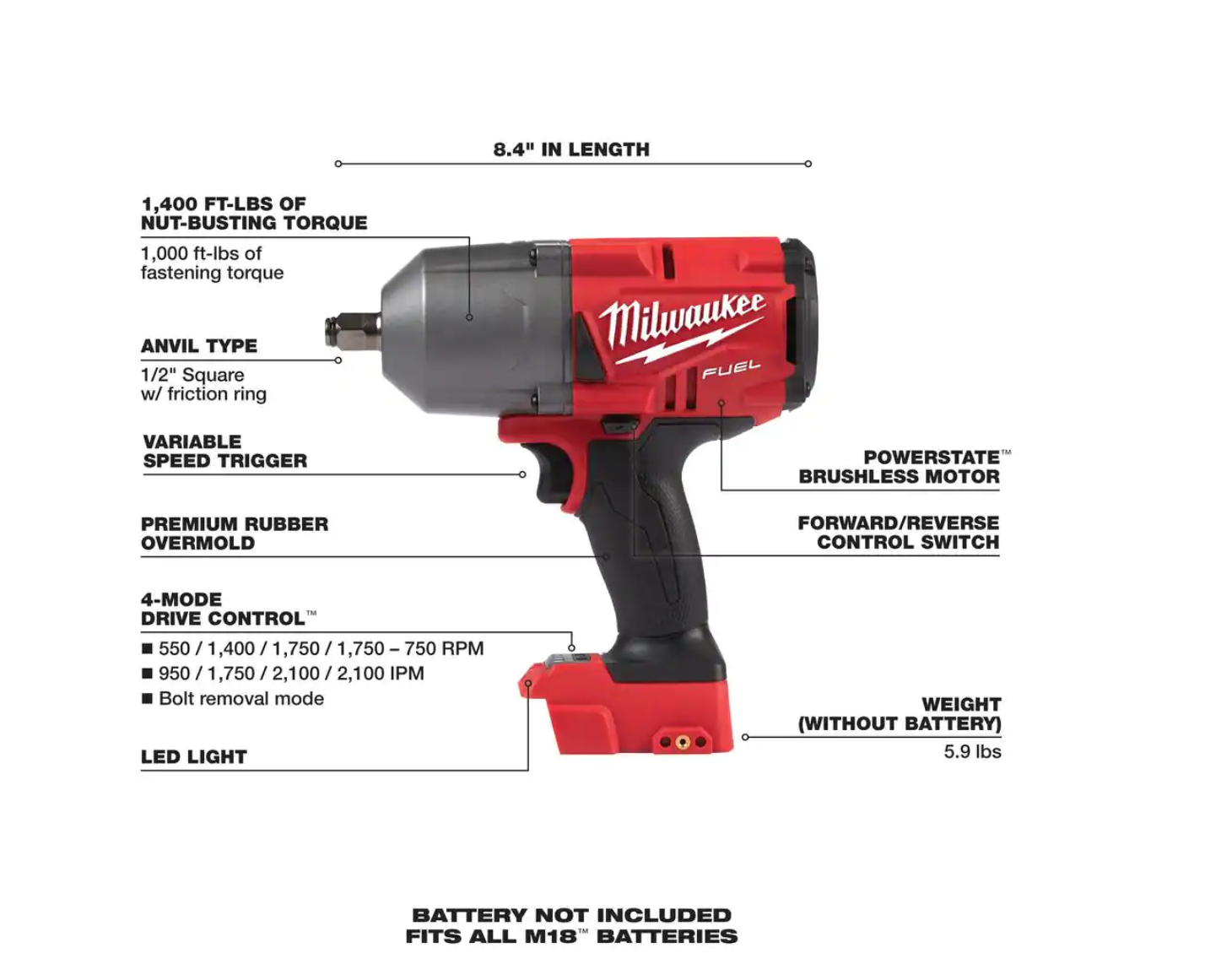 Milwaukee 2663-20 M18 18V Lithium-Ion Cordless 1/2 in. Impact Wrench W/ Friction Ring (Tool-Only)