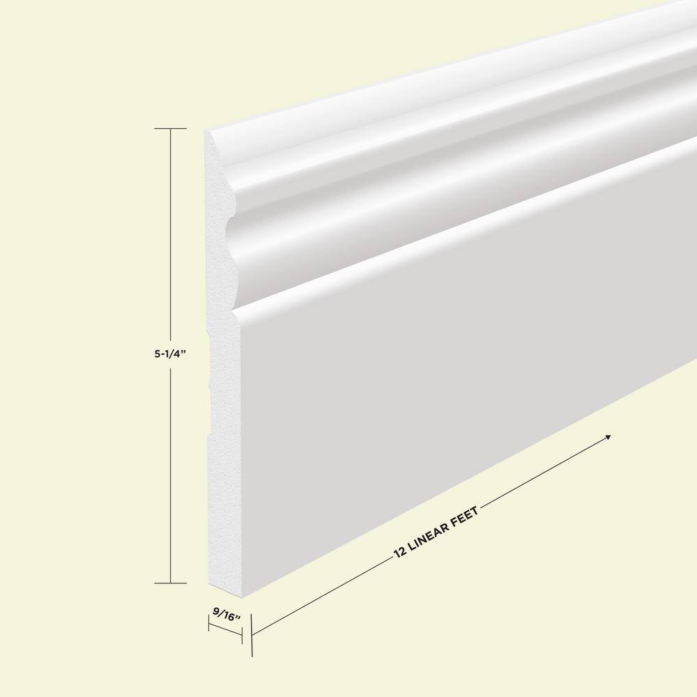MTRIM BB-WPB5180-PP Baseboard - 9/16 in. Height x 5.25 in. Width x 12 ft. Length - EPS Composite White Colonial Moulding (ProPack 8 Eaches)