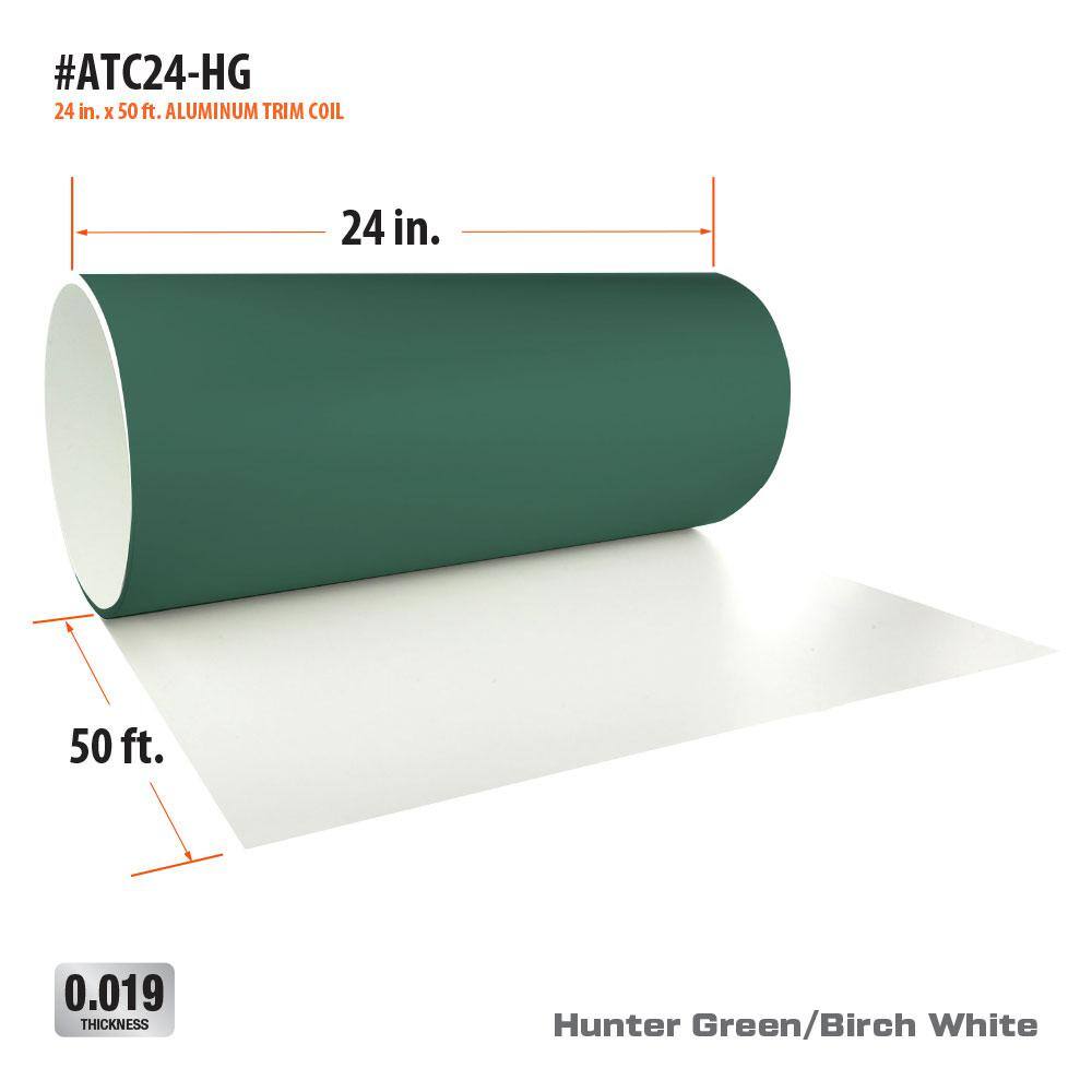 Gibraltar Building Products ATC24-HG 24 in. x 50 ft. Hunter Green Over Birch White Aluminum Trim Coil