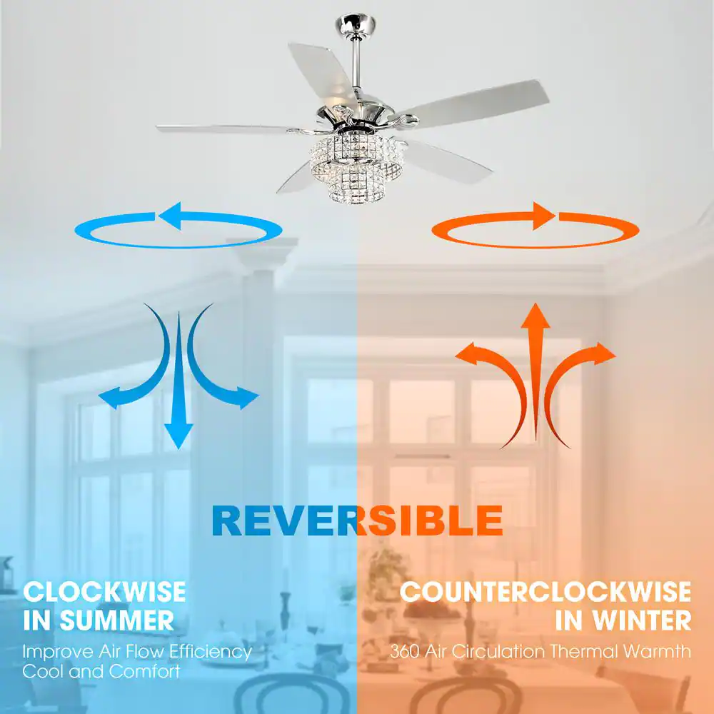 Parrot F6215A110V Uncle Howell 52 in. Indoor Chrome Downrod Mount Crystal Chandelier Ceiling Fan with Light Kit and Remote Control