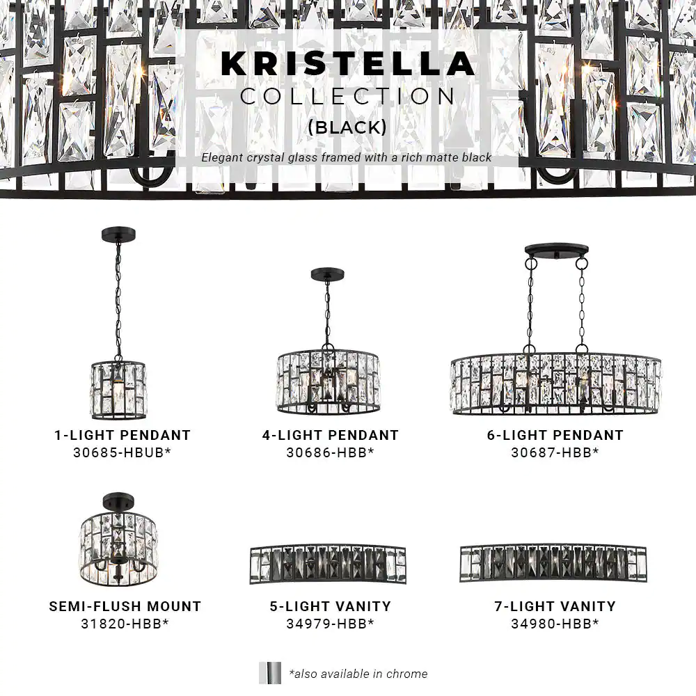Home Decorators Collection 34979-HBB Kristella 24 in. 5-Light Matte Black Vanity Light with Clear Crystal Shade