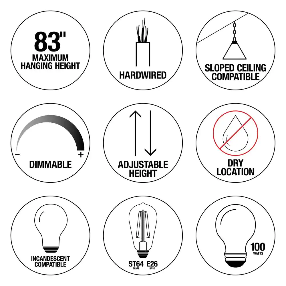 Hampton Bay Boswell Quarter 34 in. 5-Light Vintage Brass Farmhouse Linear Island Chandelier with Black Distressed Wood Accents