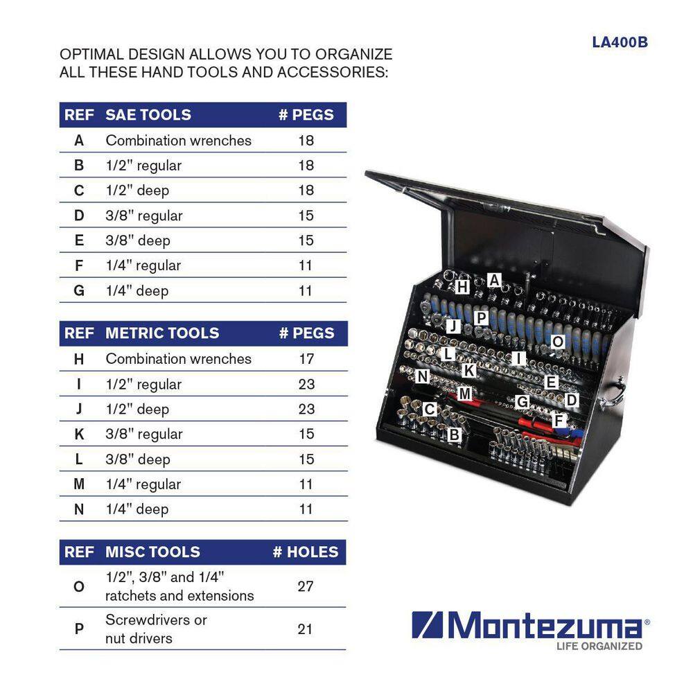 Montezuma LA400B 31 in. W x 20 in. D Portable Triangle Top Tool Chest for Sockets. Wrenches and Screwdrivers in Black Powder Coat