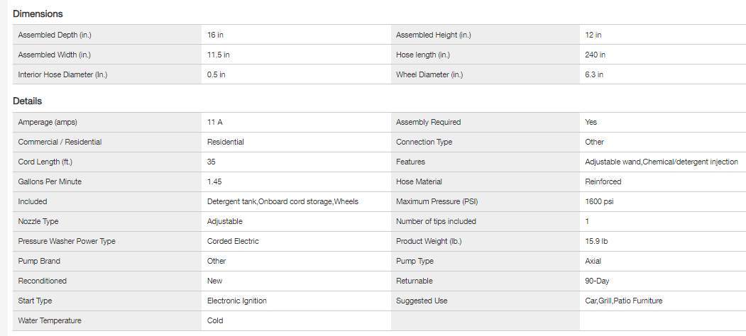 Sun Joe SPX3160 1600 PSI Max 1.45 GPM 11 Amp Cold Water 4-Wheeled Electric Pressure Washer