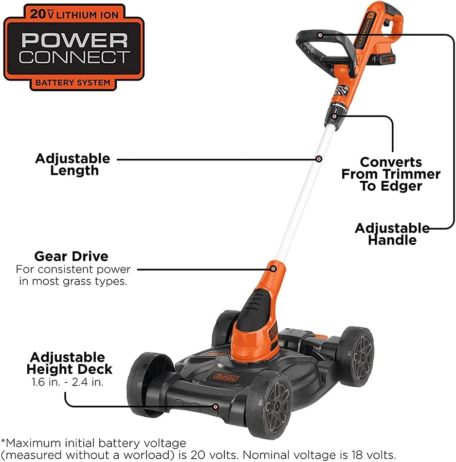 BLACK+DECKER Cordless Lawn Mower. String Trimmer. Edger. 3-in-1 (MTC220). 12-Inch