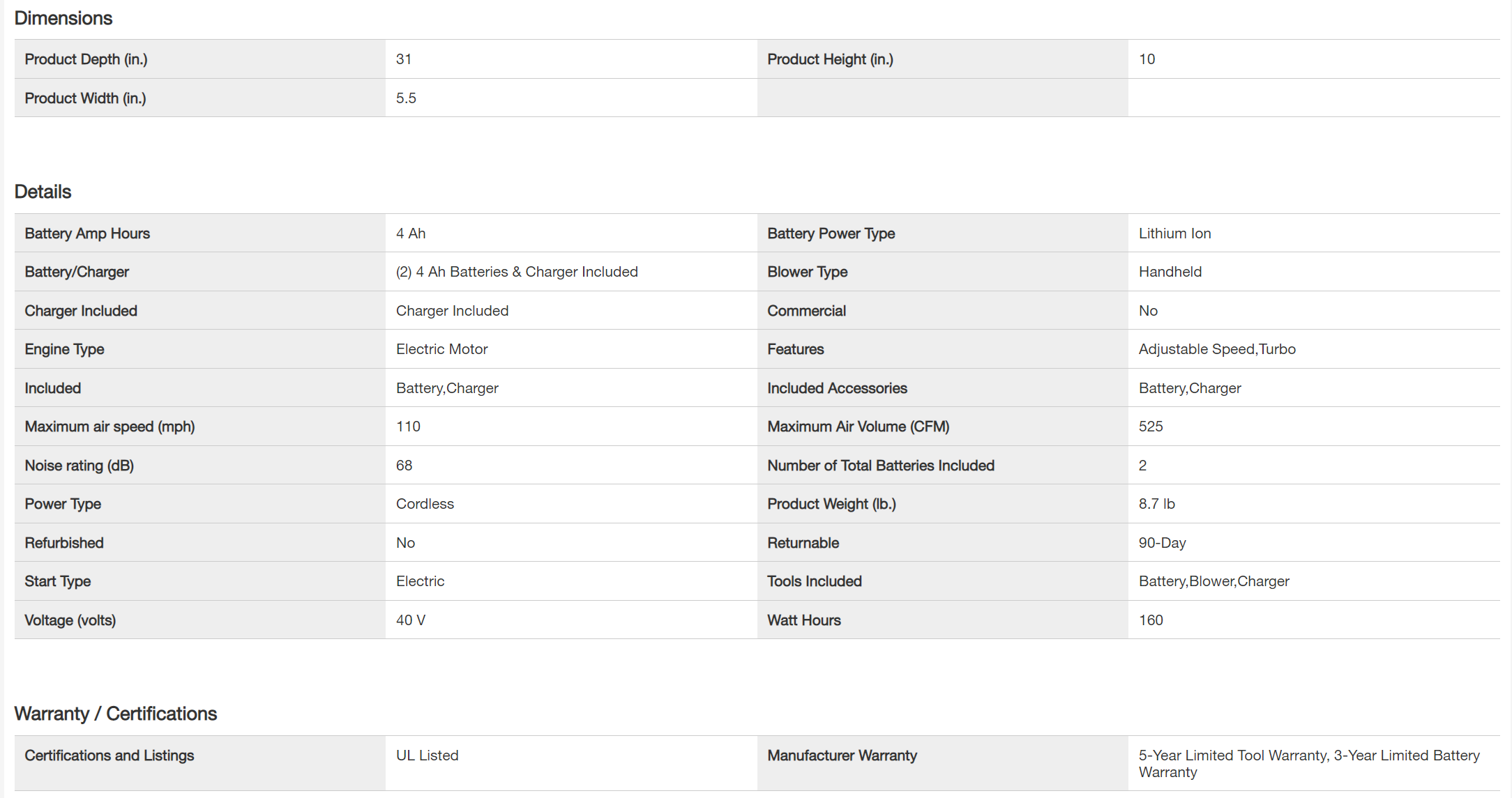 RYOBI RY40480VNM-2B 40V 110 MPH 525 CFM Cordless Battery Variable-Speed Jet Fan Leaf Blower with (2) 4.0 Ah Batteries and (1) Chargers
