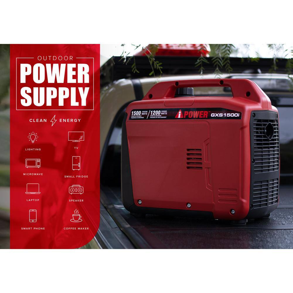 A-iPower GXS1500i 1500-Watt Recoil Start Gasoline Powered Ultra-Light Inverter Generator with 60cc OHV Engine and CO Sensor Shutdown