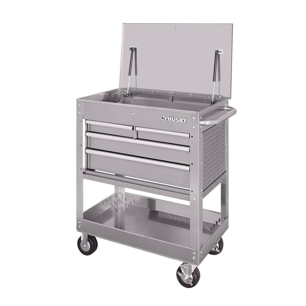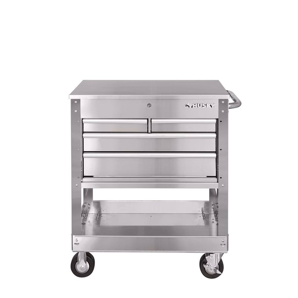 Husky HOUC3304JX1 33 in. 4-Drawer Stainless Steel Mechanics Cart