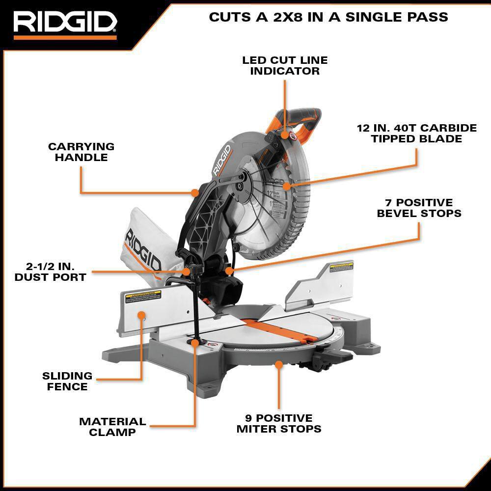RIDGID R4123 15 Amp Corded 12 in. Dual Bevel Miter Saw with LED Cutline Indicator