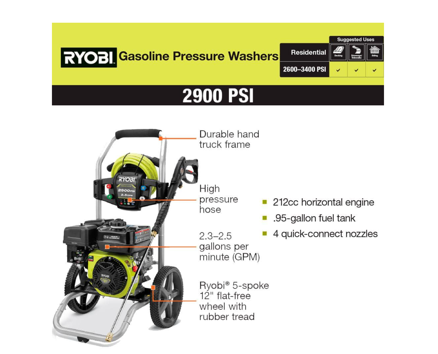 RYOBI RY802925VNM 2900 PSI 2.5 GPM Cold Water Gas Pressure Washer