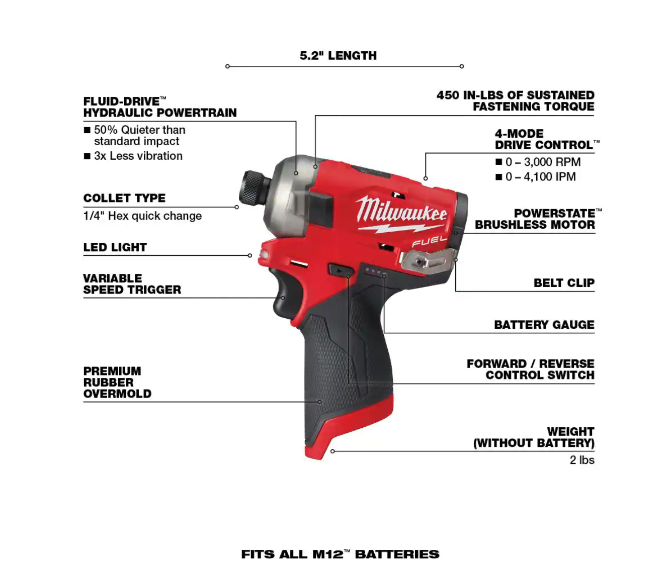 Milwaukee 2505-22-2551-20 M12 FUEL 12V Lithium-Ion Brushless Cordless 4-in-1 Installation 3/8in. Drill Driver & SURGE Impact Driver Combo Kit