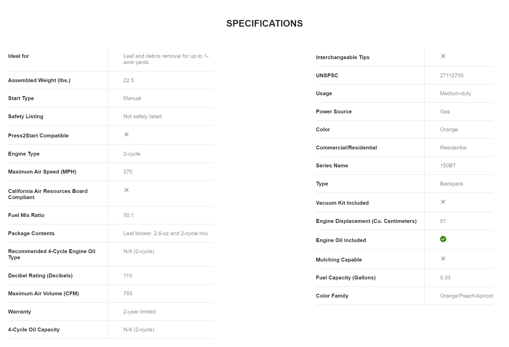 Husqvarna 150BT 51-cc 2-cycle 270-MPH 765-CFM Gas Backpack Leaf Blower (970466901)