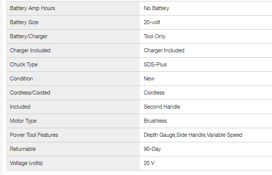 DEWALT DCH273B 20-Volt MAX XR Cordless Brushless 1 in. SDS Plus L-Shape Rotary Hammer (Tool-Only)