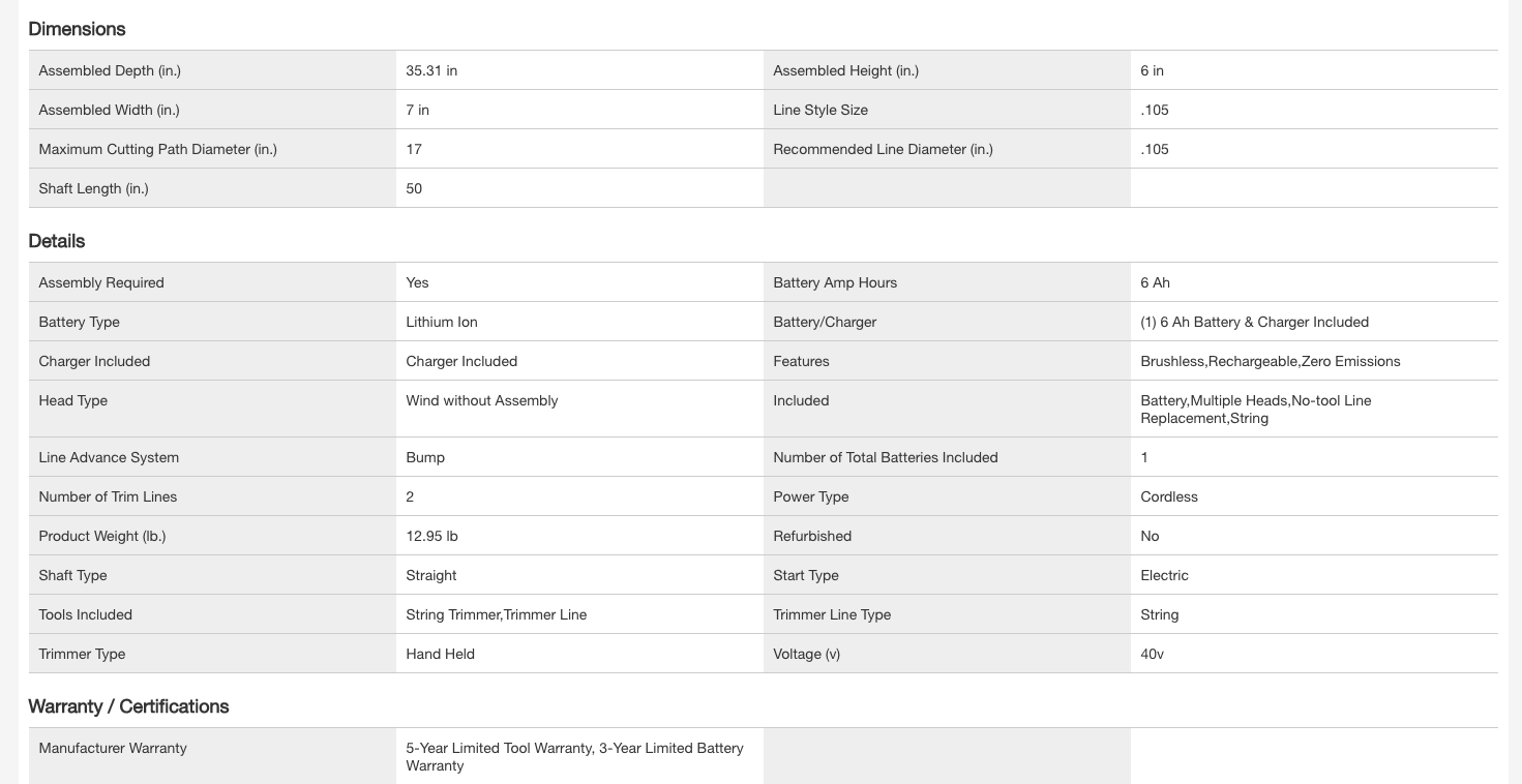 RYOBI RY402110VNM 40V HP Brushless Whisper Series 17 in. Cordless Battery Carbon Fiber Shaft String Trimmer w/ 6.0 Ah Battery & Charger