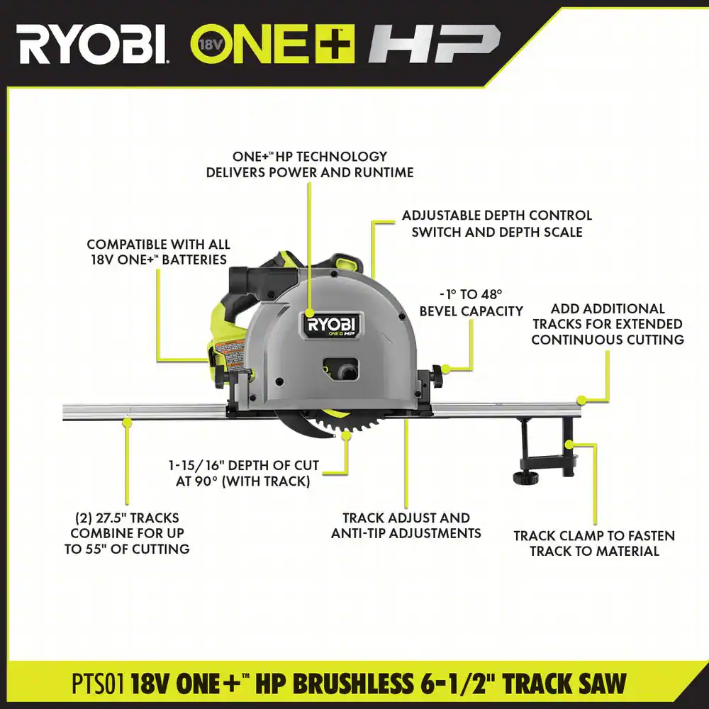 RYOBI PTS01B ONE+ HP 18V Brushless Cordless 6-1/2 in. Track Saw (Tool Only)