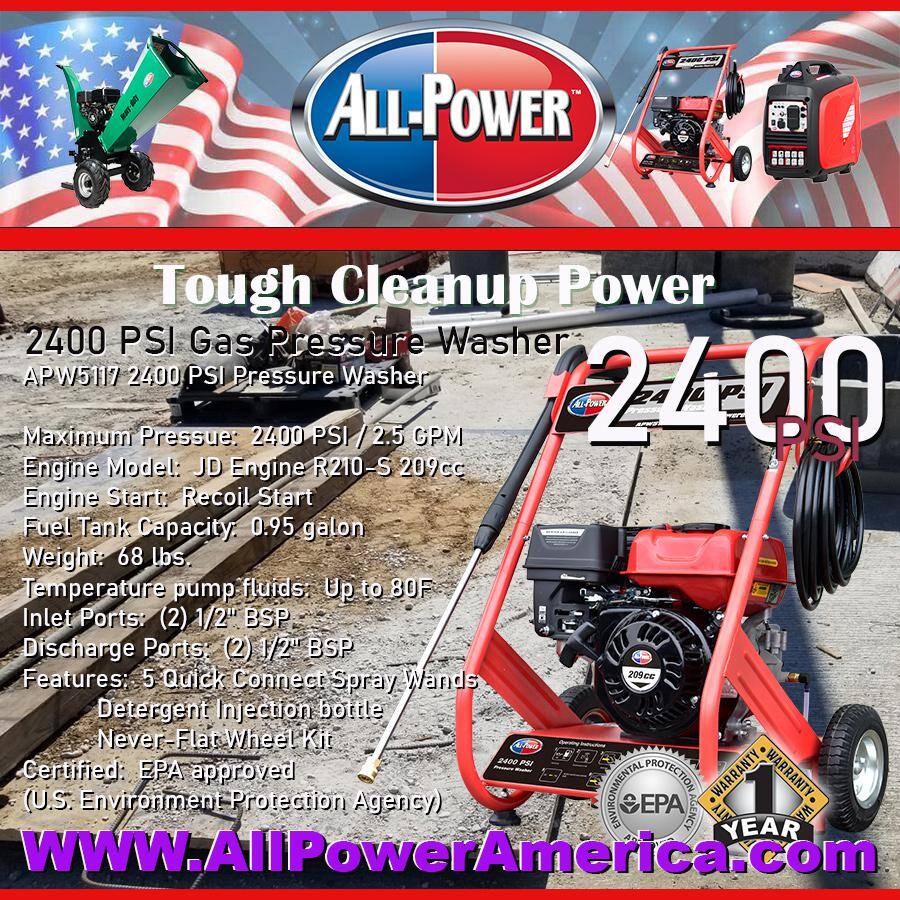 All Power APW5117 2400 PSI 2.5 GPM Gas Powered Pressure Washer