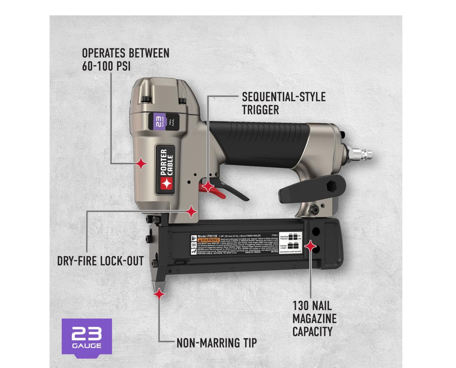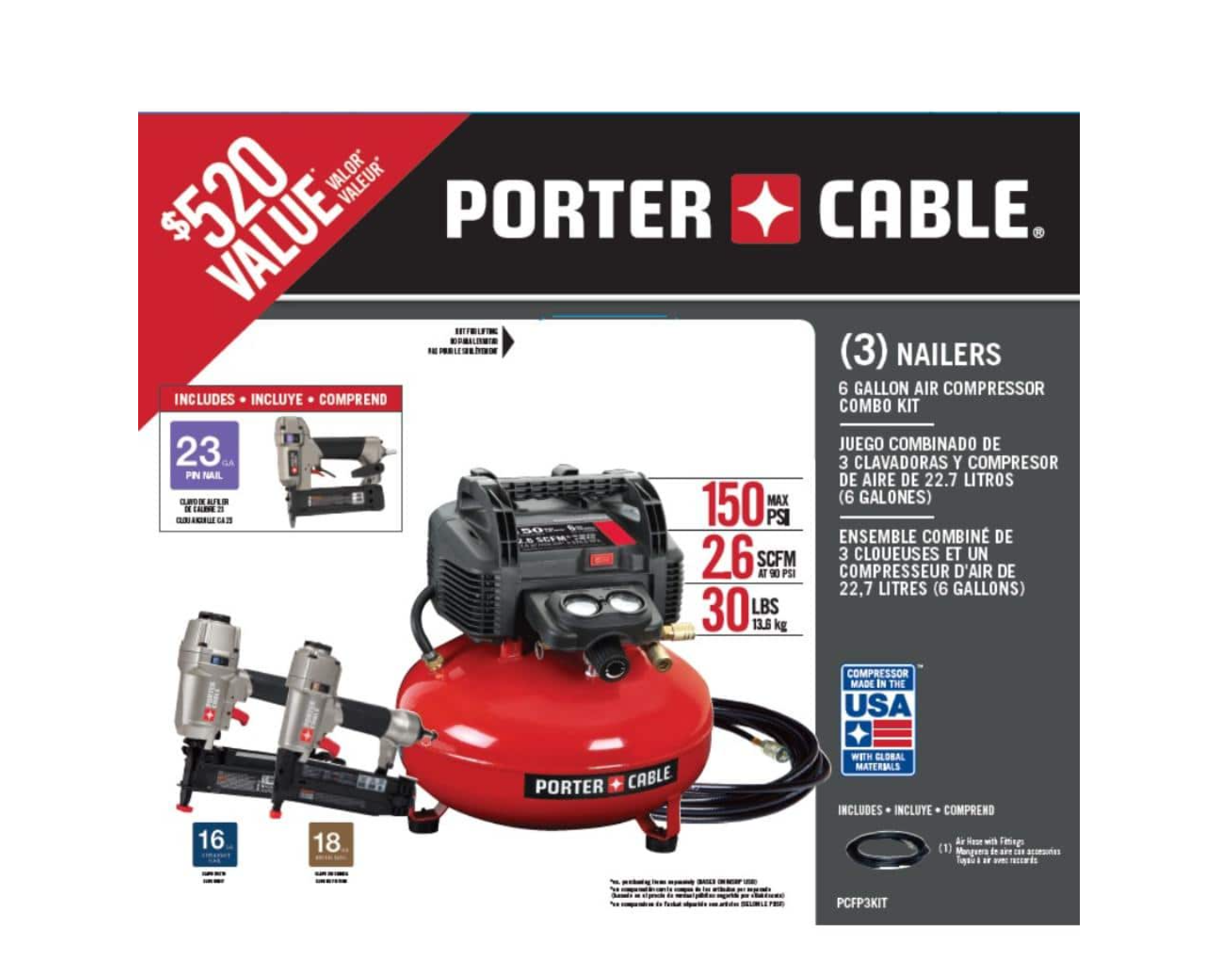 Porter-Cable PCFP3KIT 6 Gal. Portable Electric Air Compressor with 16-Gauge. 18-Gauge and 23-Gauge Nailer Combo Kit (3-Tool)