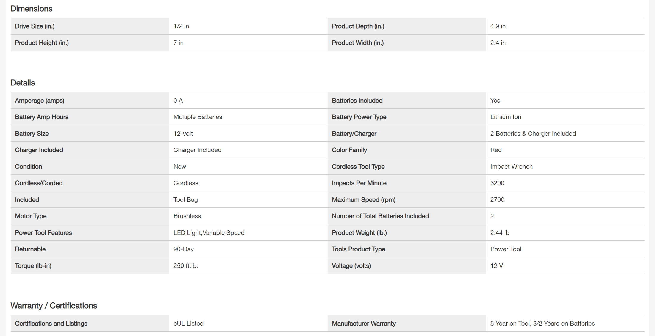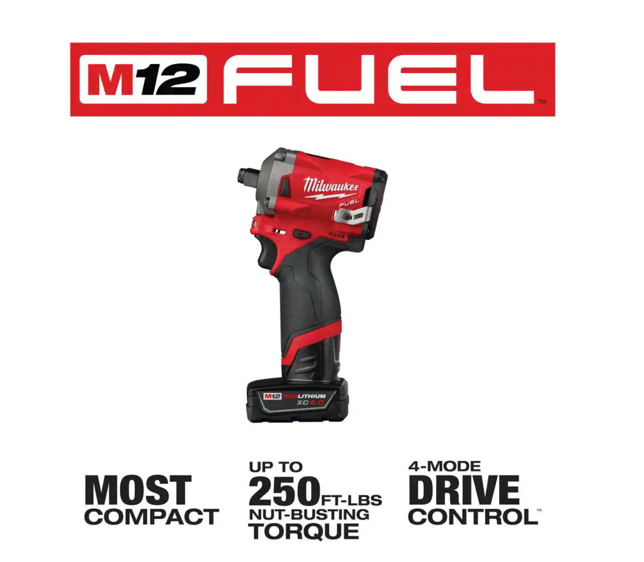 Milwaukee 2555-22 M12 FUEL 12V Lithium-Ion Brushless Cordless Stubby 1/2 in. Impact Wrench Kit with One 4.0 and One 2.0Ah Batteries