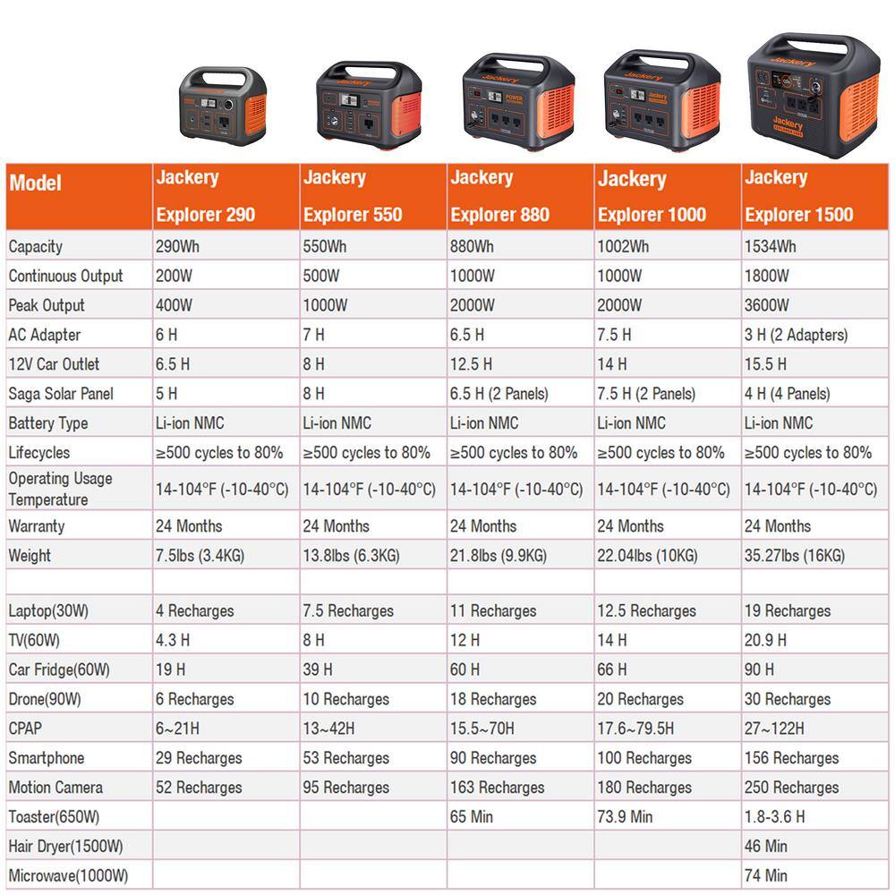 Jackery HTE042-550 500-Watt Continuous/1000-Watt Peak Output Power Station Explorer 550 Push Button Start Battery Generator for Outdoors