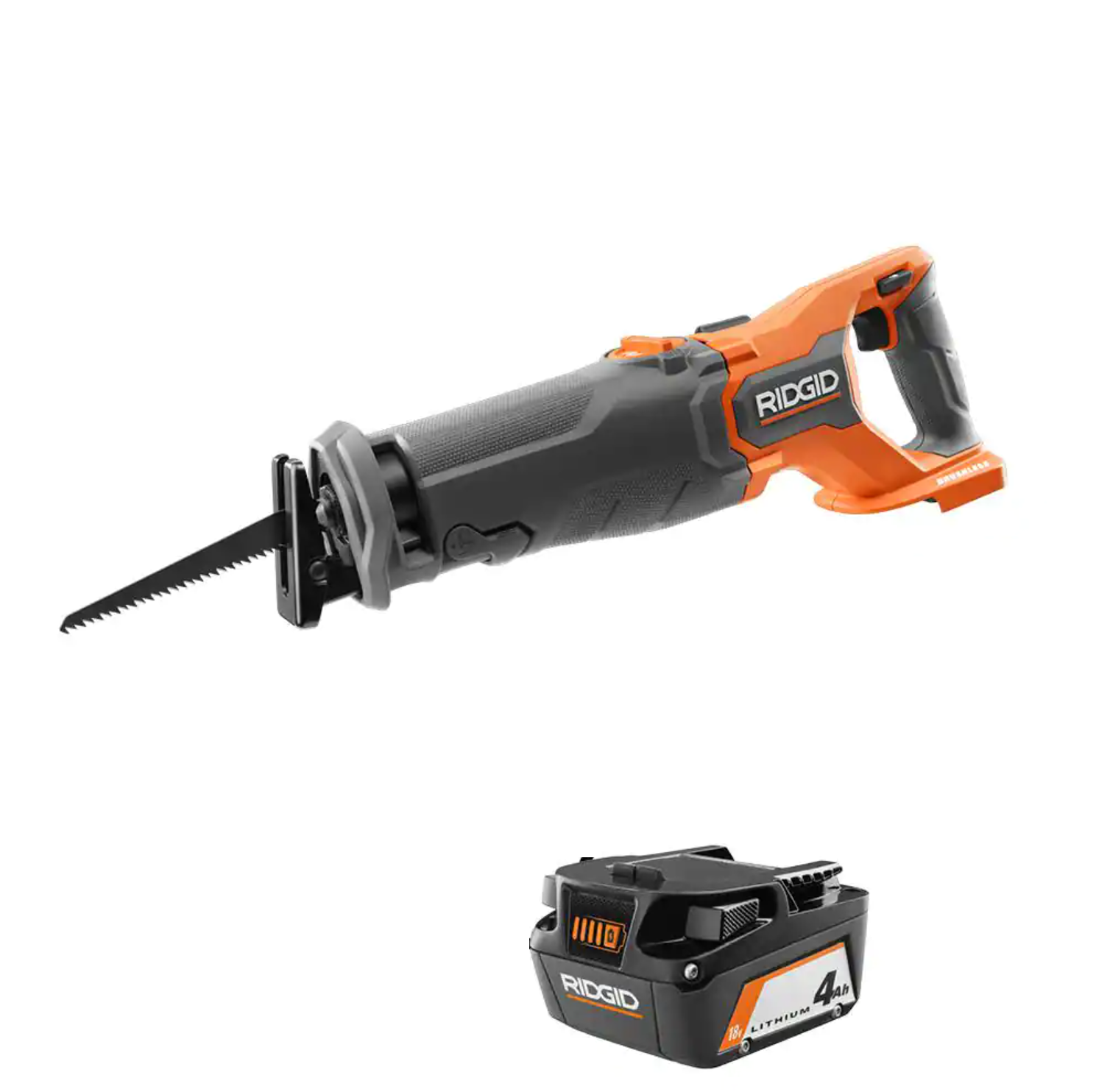 RIDGID R8647B-AC87004 18V Brushless Cordless Reciprocating Saw with 18V Lithium-Ion 4.0 Ah Battery