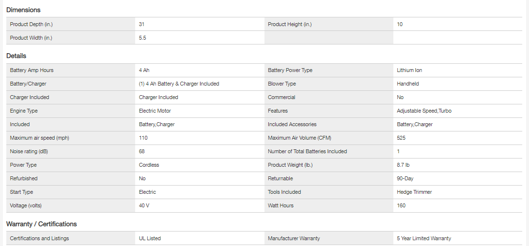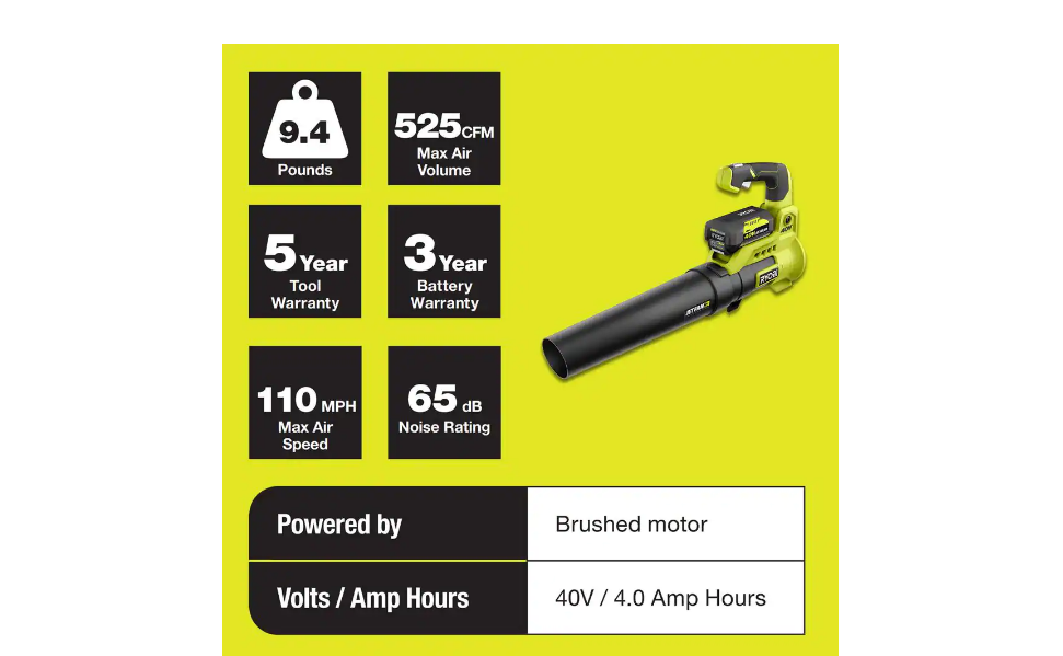 RYOBI RY40480VNM-HDG 40V 110 MPH 525 CFM Cordless Variable-Speed Jet Fan Leaf Blower & 24 in. Hedge Trimmer with 4.0 Ah Battery & Charger