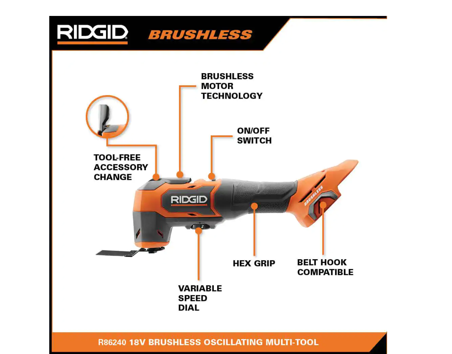RIDGID R960261SB2N 18V Brushless 2-Tool Combo Kit with Reciprocating Saw and Multi-Tool (Tools Only)