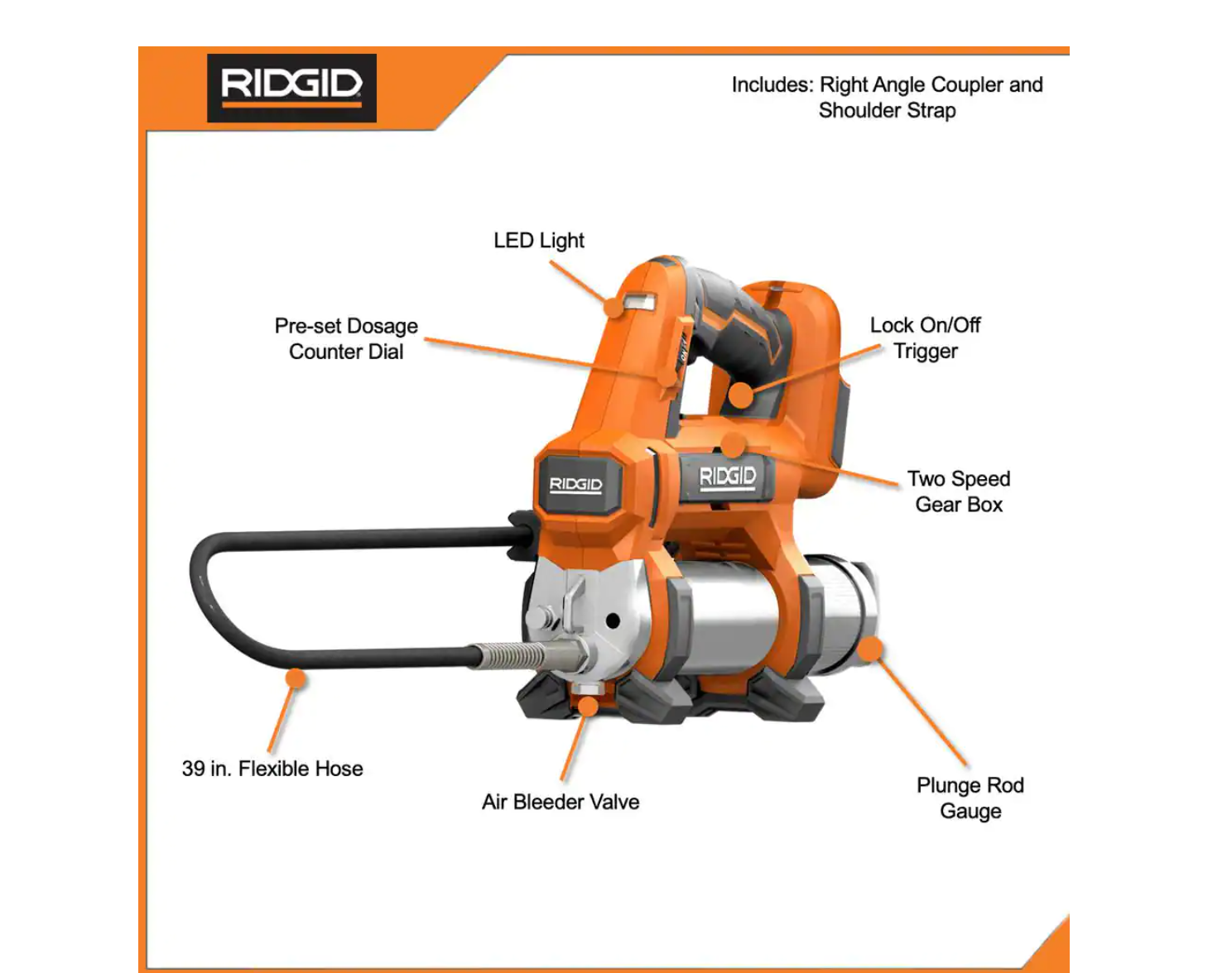 RIDGID R92162SBN-R860445B 18V Cordless 3-Tool Combo Kit w/ SubCompact Brushless Impact Wrench. Inflator. & Torch Light (Tools Only) w/ Grease Gun