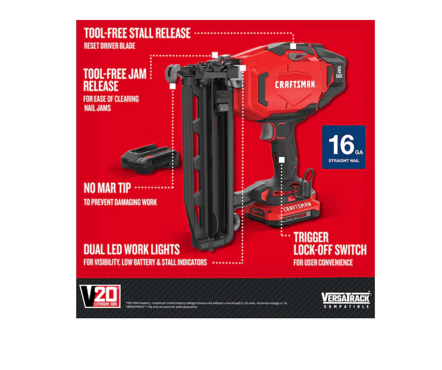CRAFTSMAN CMCN616C1 V20 16-Gauge 20-volt Max Cordless Finish Nailer