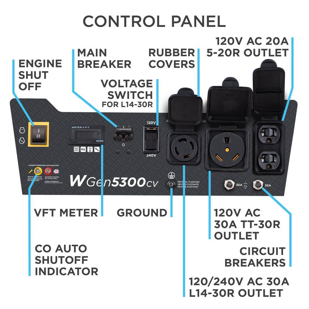 Westinghouse WGen5300cv WGen5300cv 6.600-Watt/5.300-Watt Recoil Start Gas Powered Portable Generator with RV Ready Outlet and CO Sensor