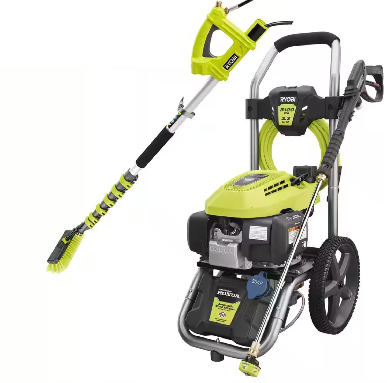 RYOBI RY803023-EP 3100 PSI 2.3 GPM Honda Gas Pressure Washer and Extension Pole with Brush