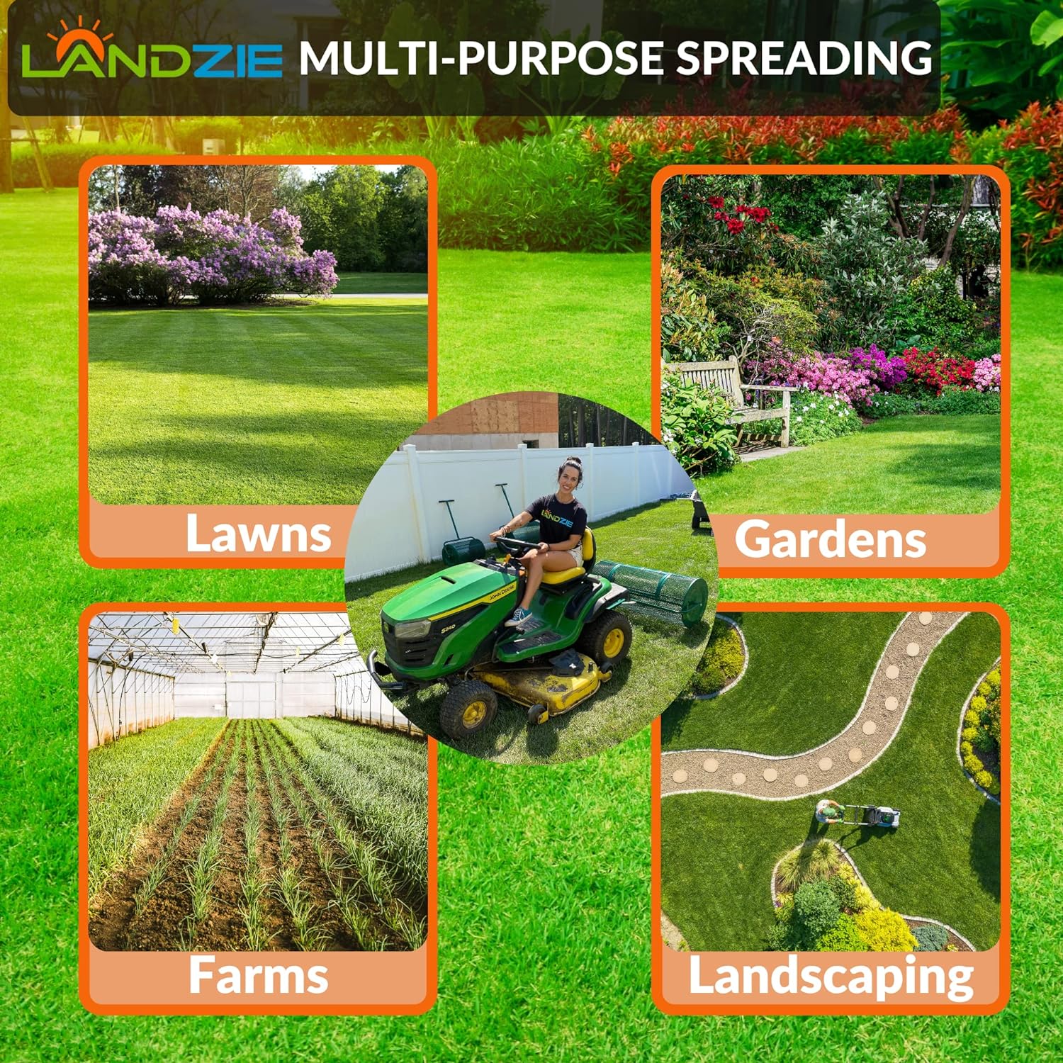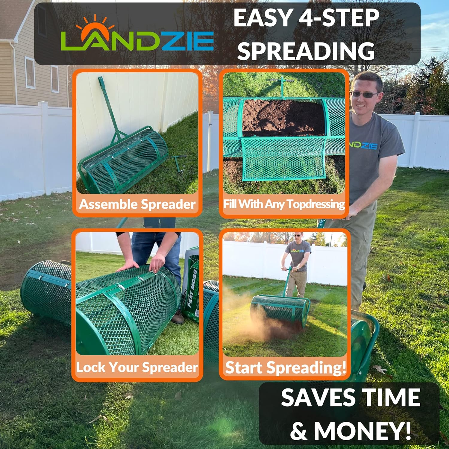 Landzie Lawn & Garden Spreaders - 36 Inch Heavy Duty Metal Mesh Basket Push/Tow Spreader - Compost. Peat Moss. Top Soil. Mulch - Durable Lightweight Multi-Purpose Yard Care Equipment - Manure Spreader