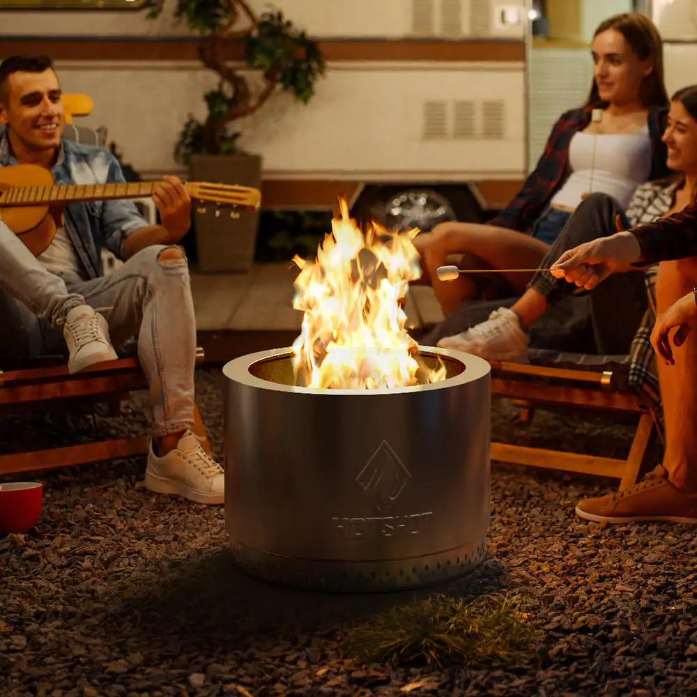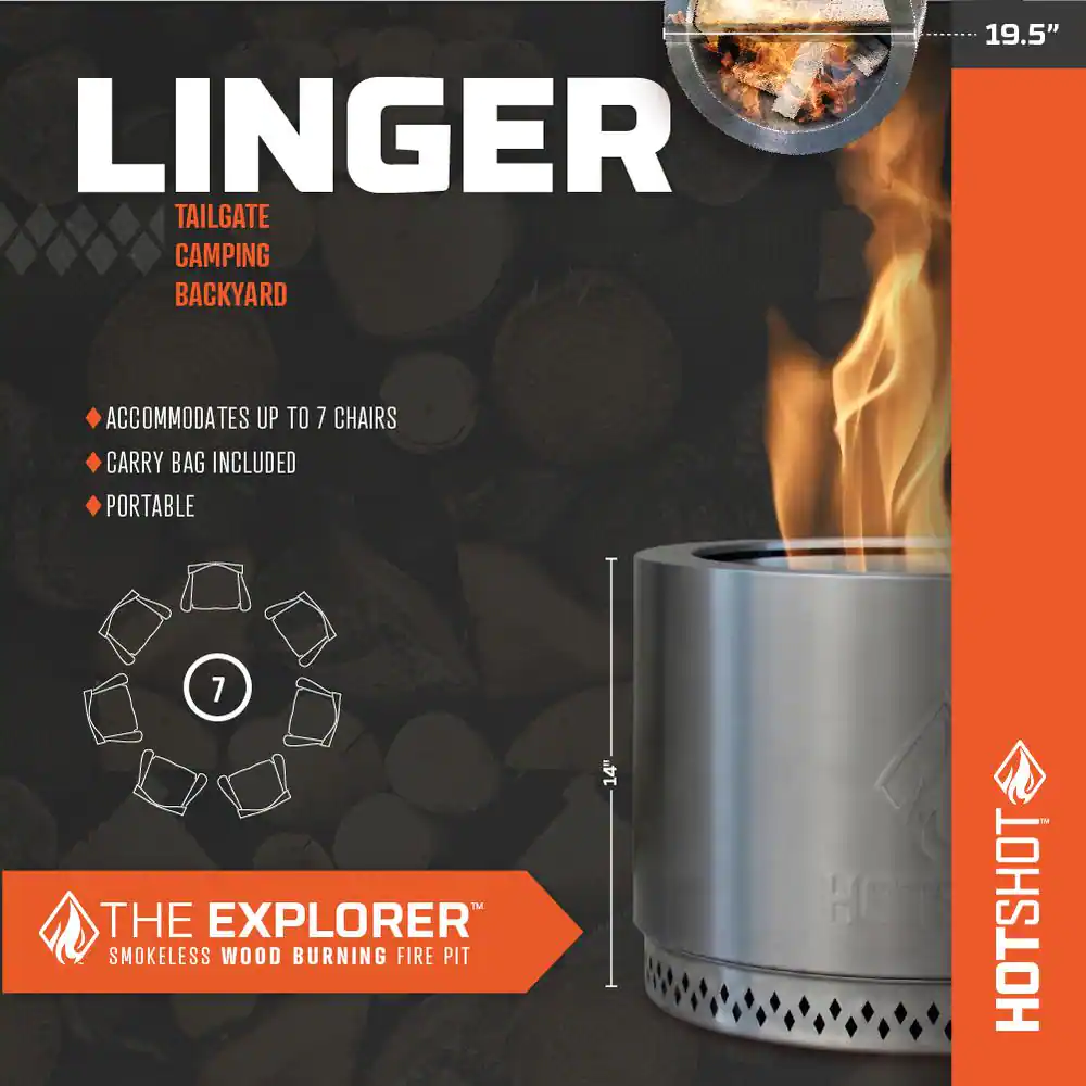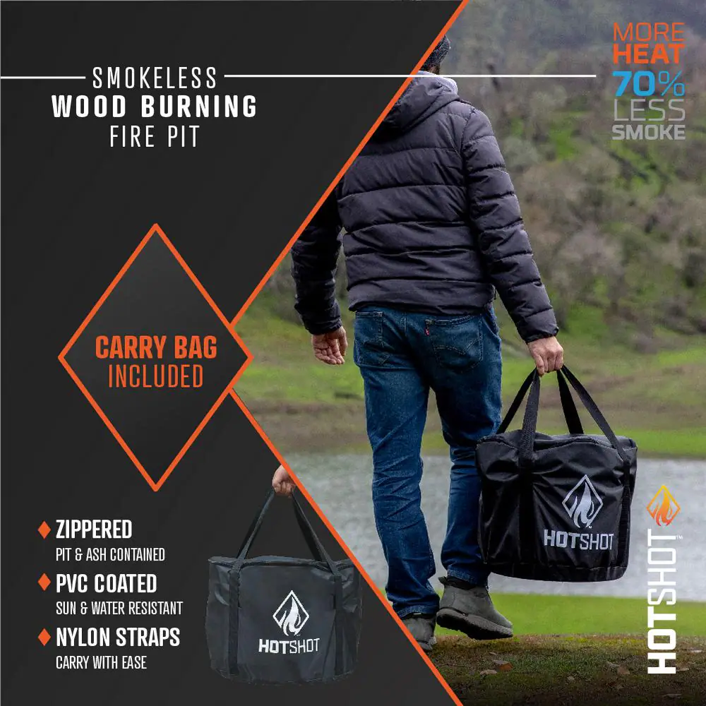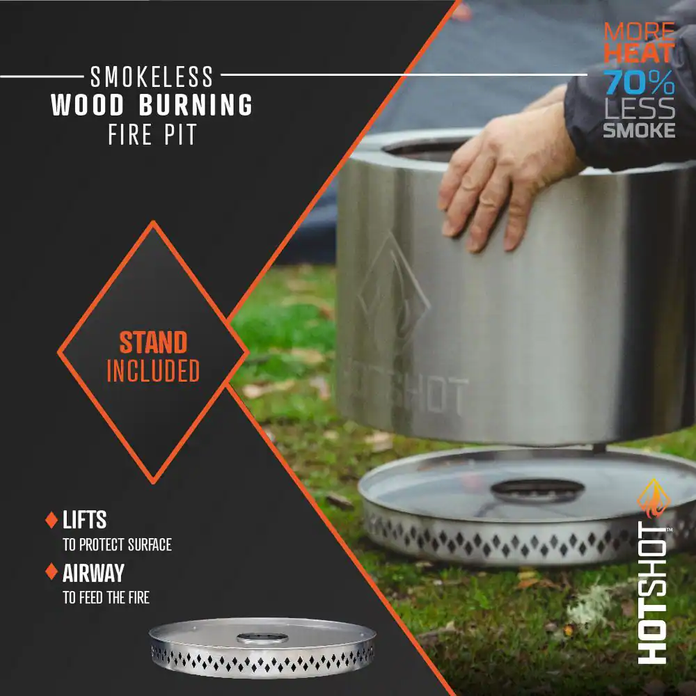 HotShot 52258 Explorer Portable Low Smoke 19.5 in. Round Wood-Burning Fire Pit in Stainless Steel with Carry Bag