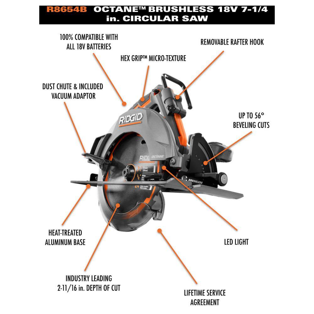 RIDGID R8654B-AC840040 18V Brushless Cordless 7-1/4 in. Circular Saw with 18V 4.0 Ah MAX Output Lithium-Ion Battery