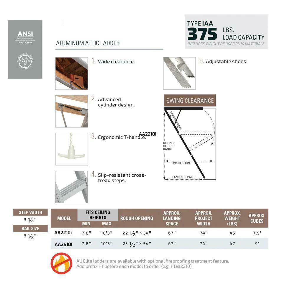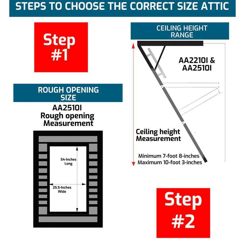 Louisville Ladder AA2510I 7 ft. 8 in. to 10 ft. 3 in.. 25.5 in. x 54 in. Aluminum Attic Ladder with 375 lbs. Maximum Load Capacity