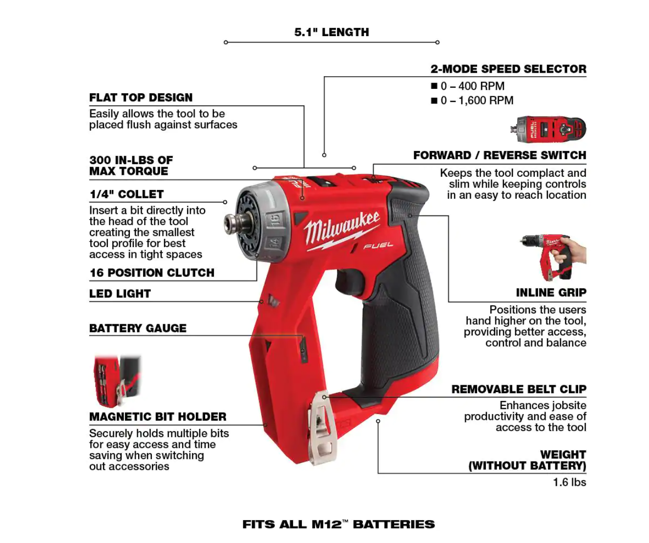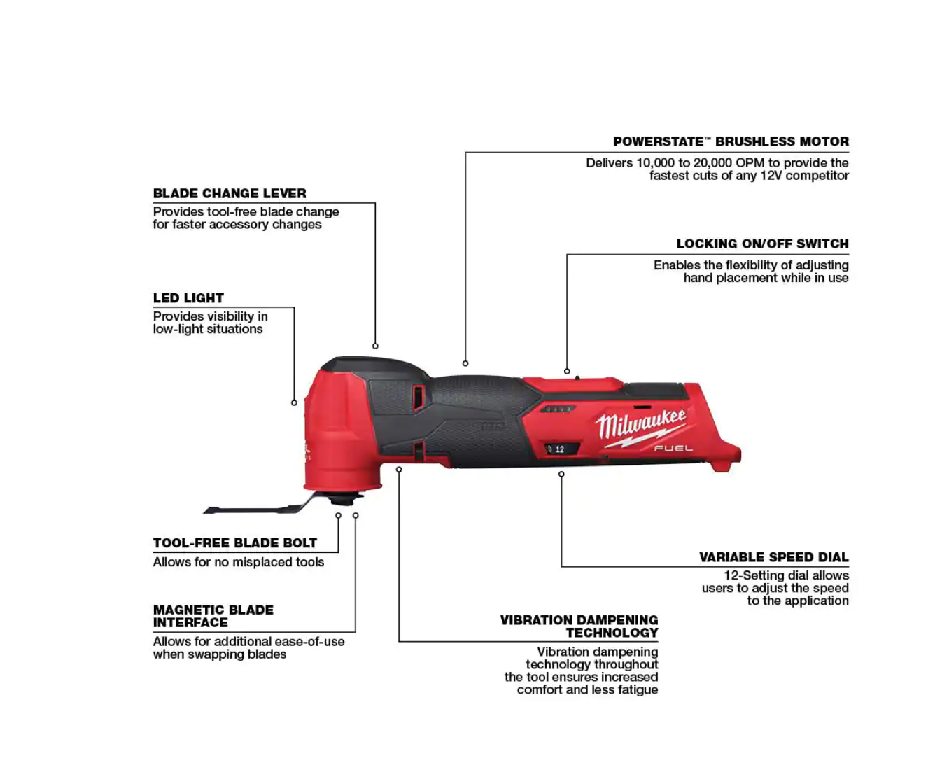 Milwaukee 2505-20-2526-20 M12 FUEL 12-Volt Lithium-Ion Brushless Cordless 4-in-1 Installation 3/8 in. Drill Driver and Multi-Tool Set (Tool-Only)