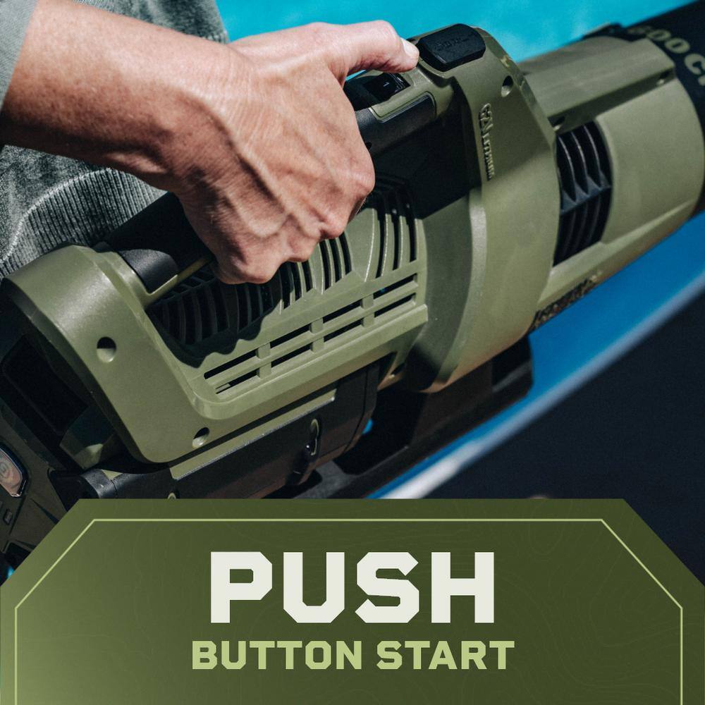 Green Machine GMLB6200 62V Cordless Axial Blower Variable Speed Brushless Motor. 123 MPH Max air speed. 655 CFM. 4 Ah Battery & Rapid Charger