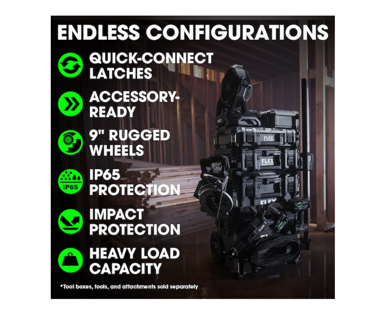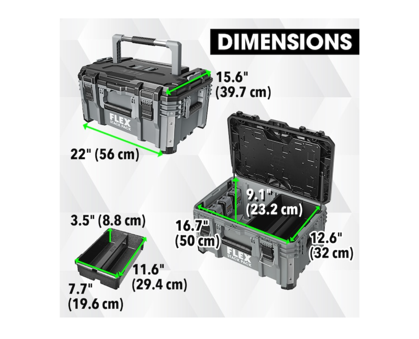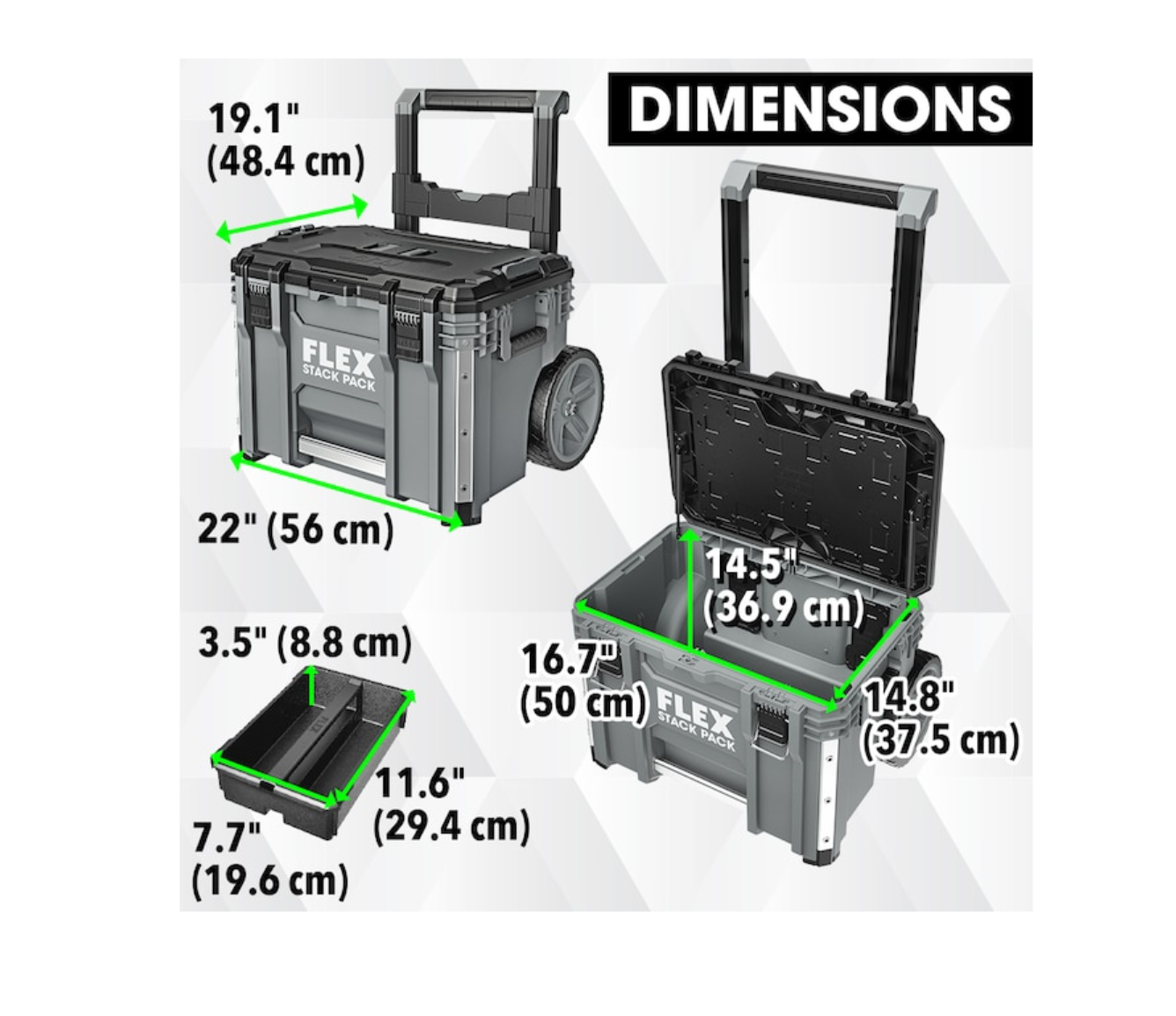 FLEX FSM1101-3 STACK PACK 3-Piece Storage System Fsm1101-3 22-in Gray Plastic and Metal Wheels Lockable Tool Box