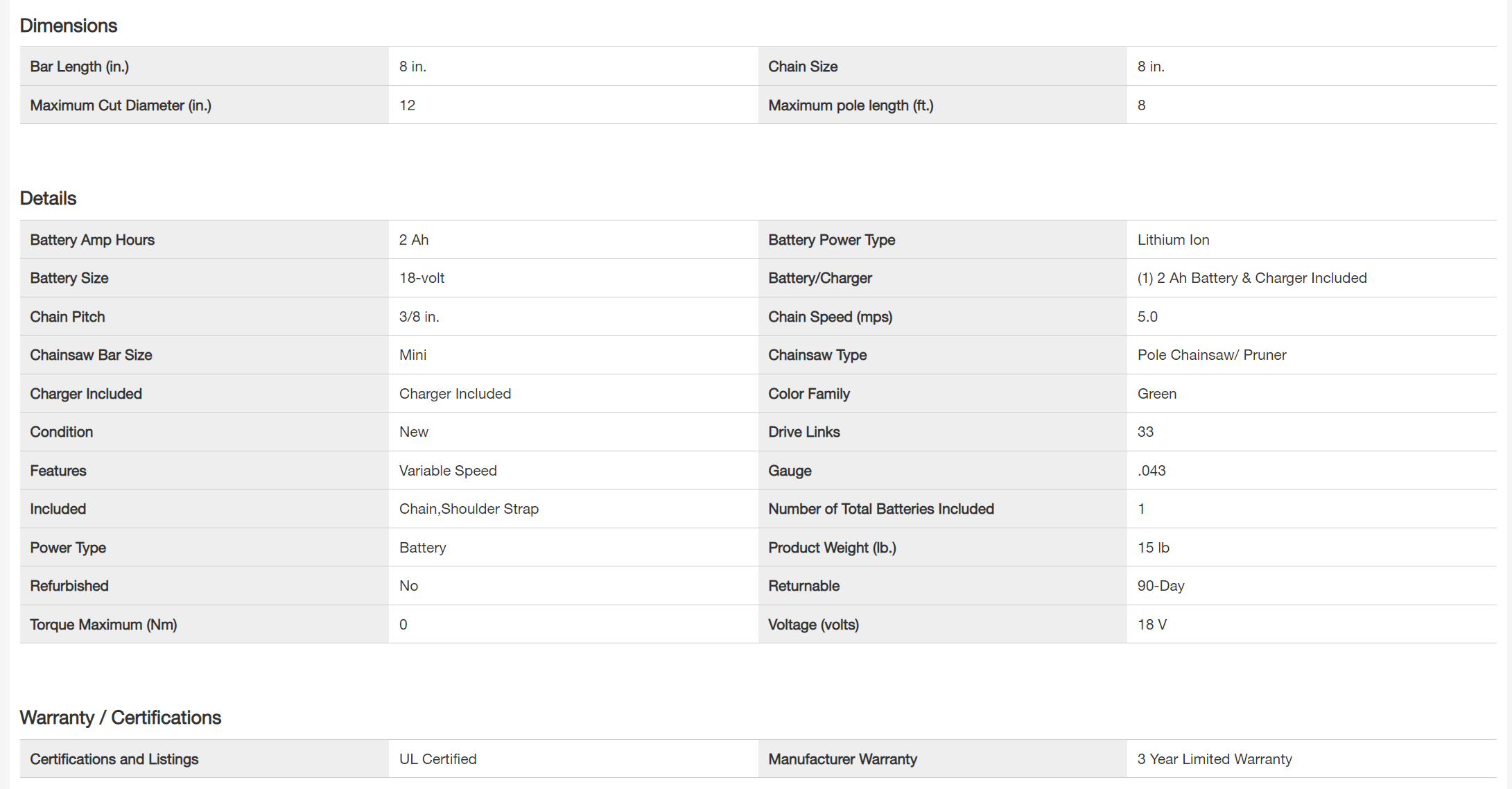 RYOBI P20310 ONE+ 18V 8 in. Cordless Battery Pole Saw and 8 in. Pruning Saw Combo Kit with 2.0 Ah Battery and Charger