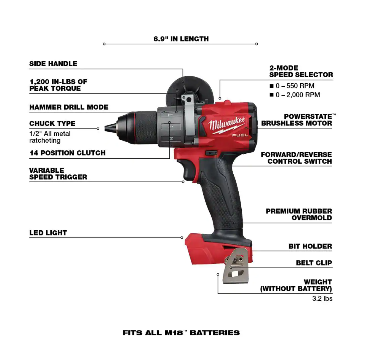 Milwaukee 2804-20-48-59-1835 M18 FUEL 18-Volt Lithium-Ion Brushless Cordless 1/2 in. Hammer Drill / Driver W/ 3.0Ah Battery and Charger