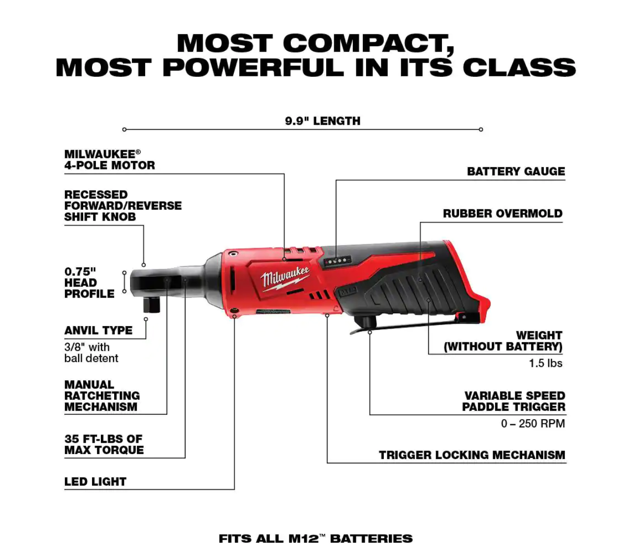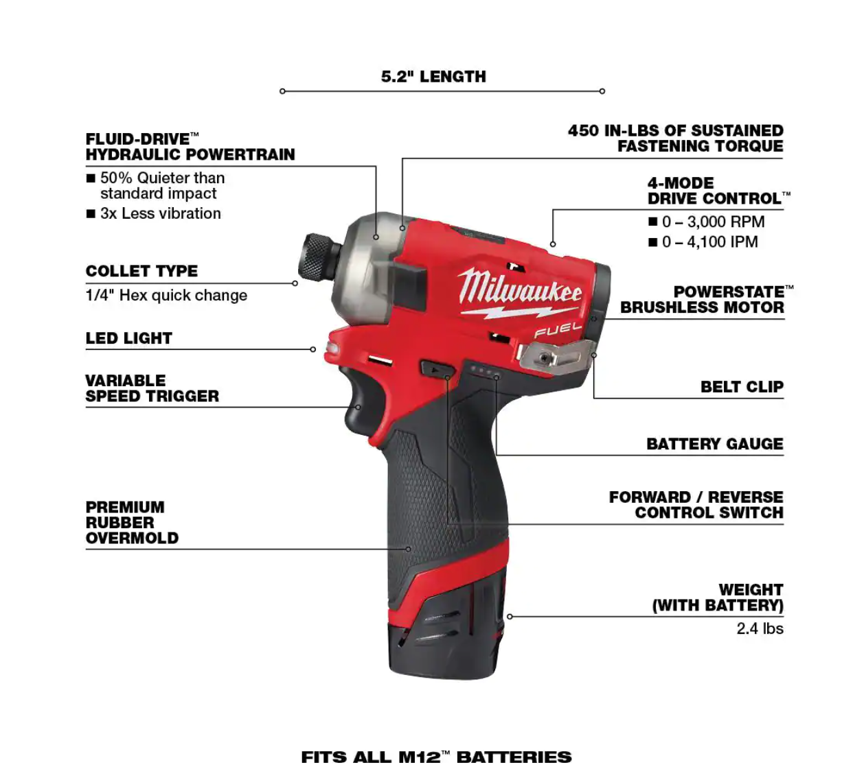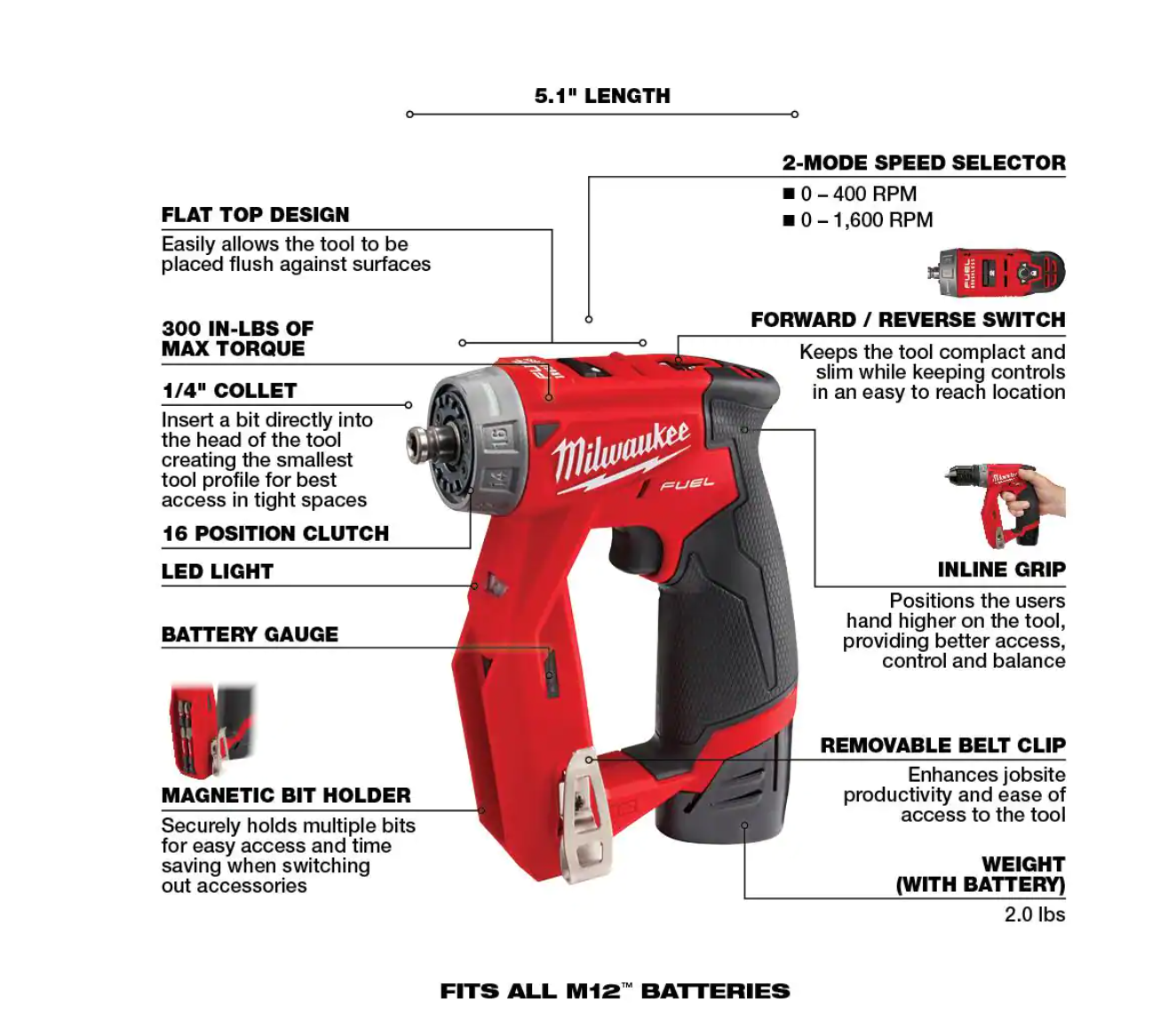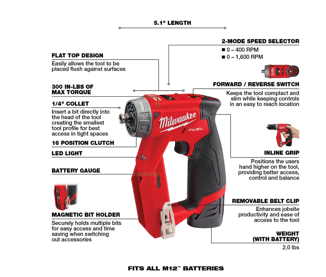 Milwaukee 2551-22-2457-20 M12 FUEL SURGE 12V Lithium-Ion Brushless Cordless 1/4 in. Hex Impact Driver Compact Kit w/ M12 3/8 in. Ratchet