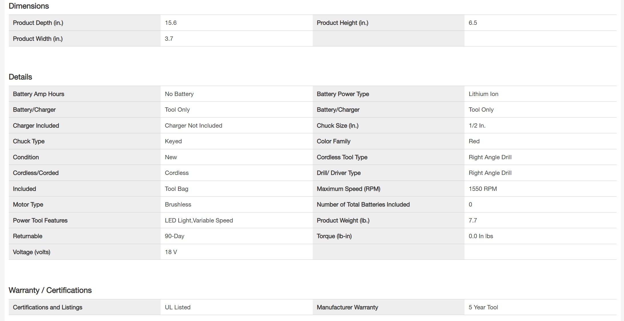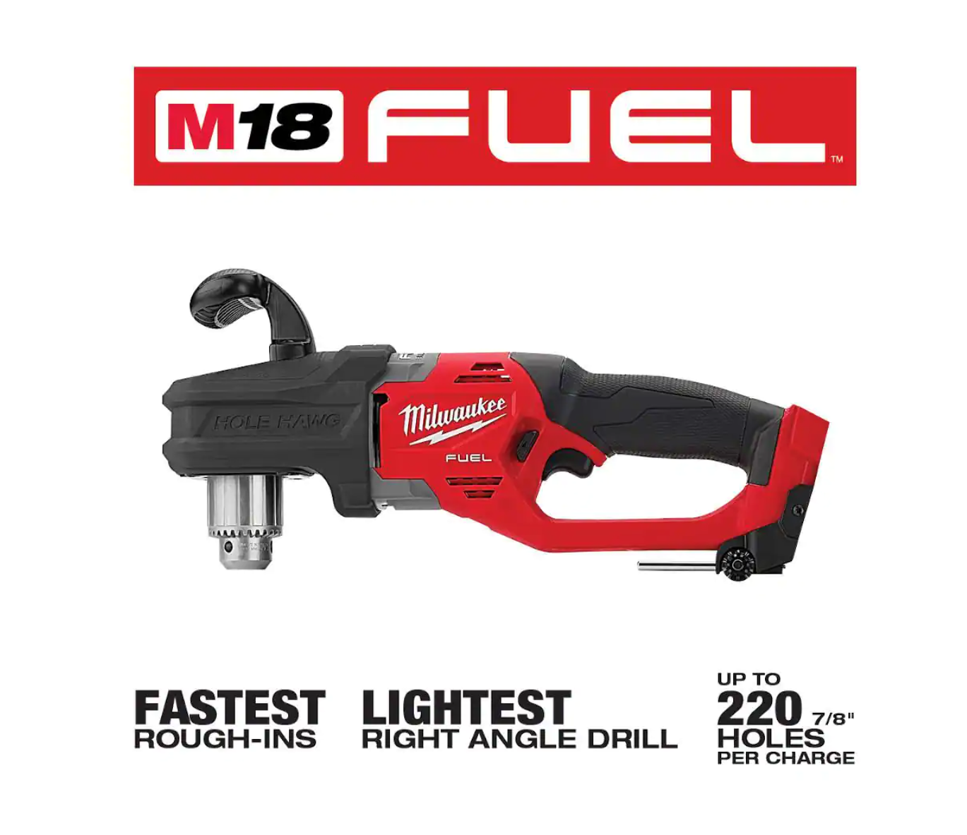 Milwaukee 2807-20 M18 FUEL GEN II 18V Lithium-Ion Brushless Cordless 1/2 in. Hole Hawg Right Angle Drill (Tool-Only)